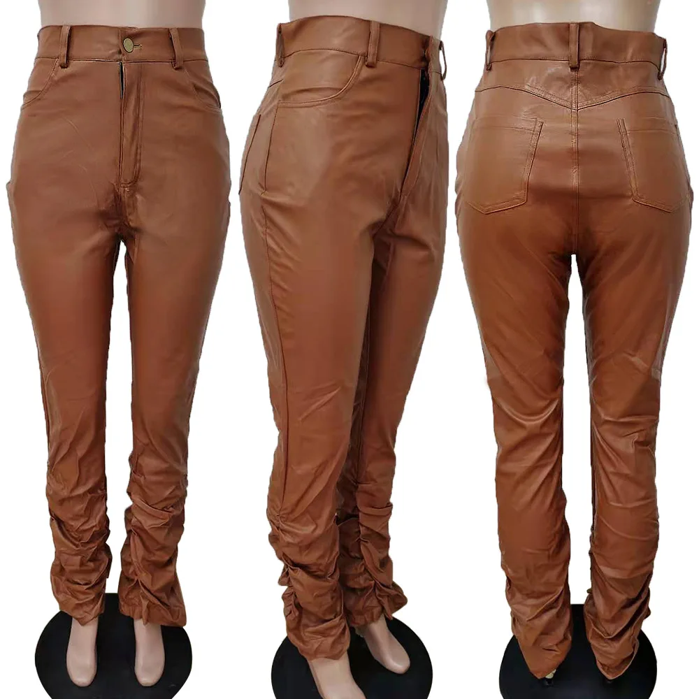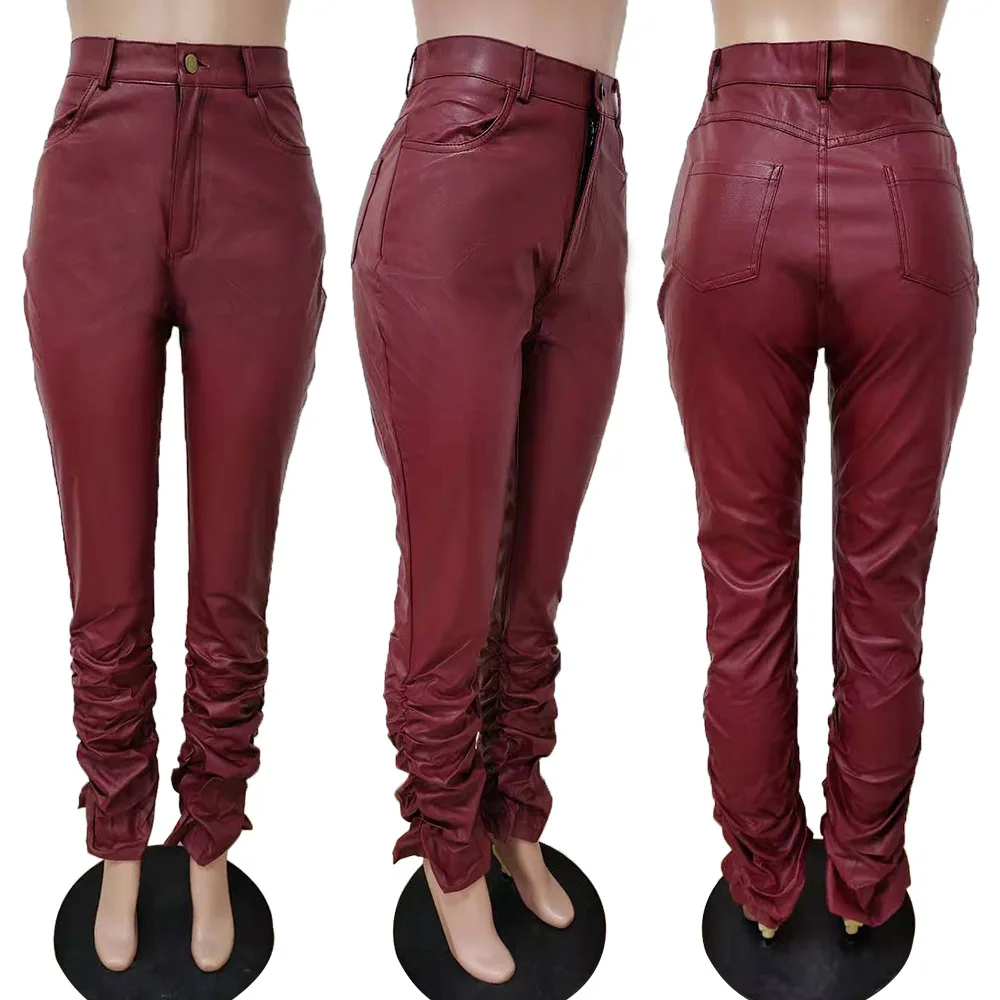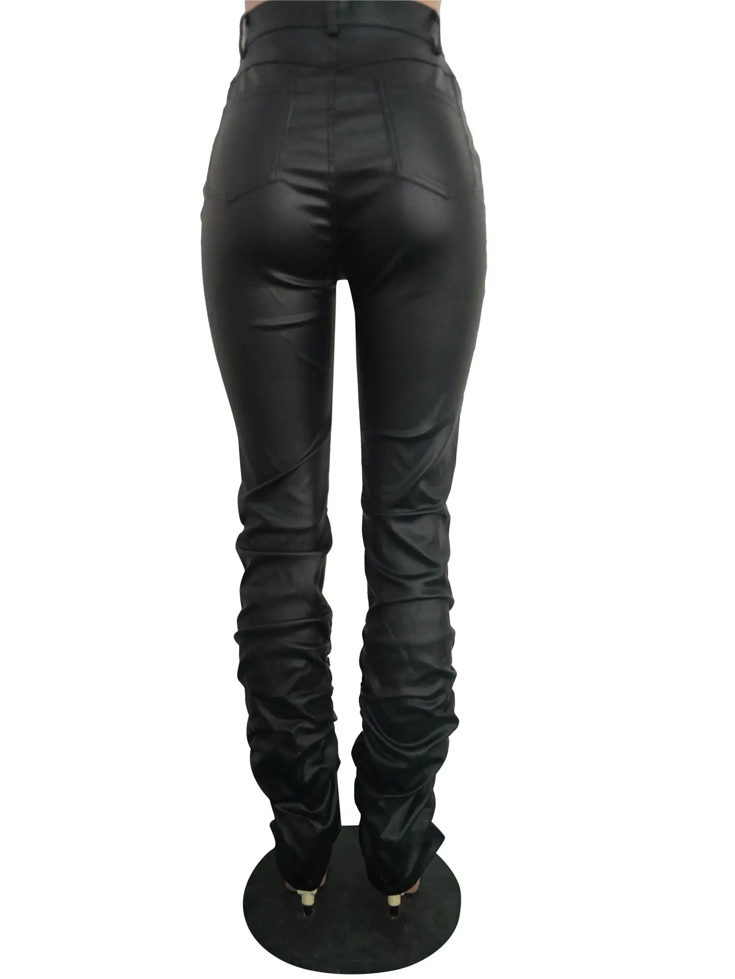 New Fashion 2024 Women Clothing Faux Leather Pants Cyber Y2k Vintage Stacked Button Up Long Trouser
