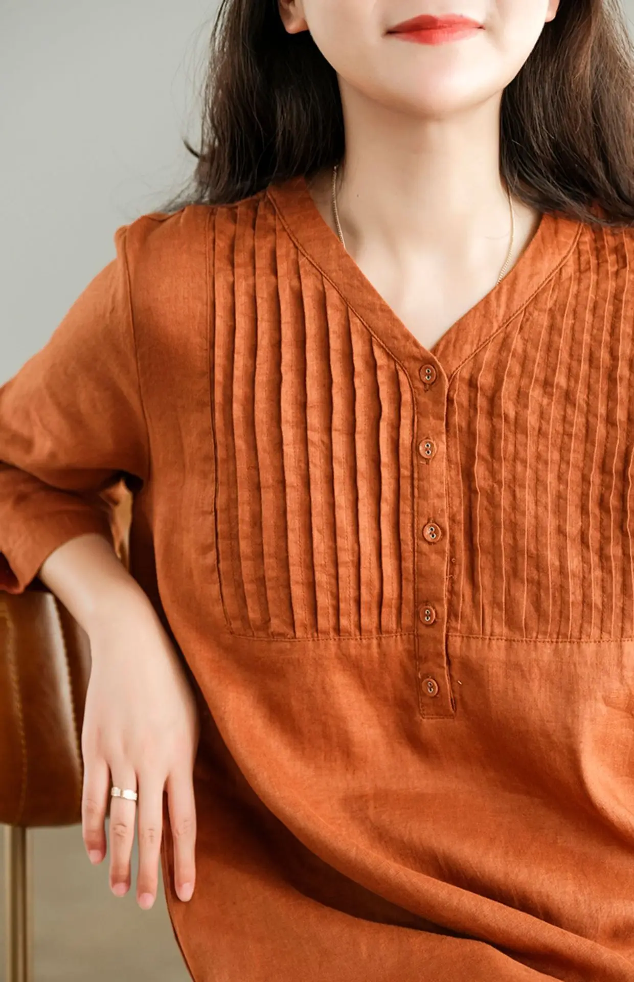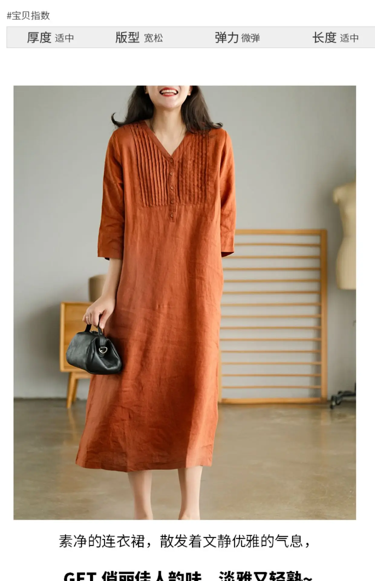 New in Dresses Spring Summer Fashionable V-Neck Solid Color Loose Robe Elegant Long Dress Retro Loose Fitting Women Clothing
