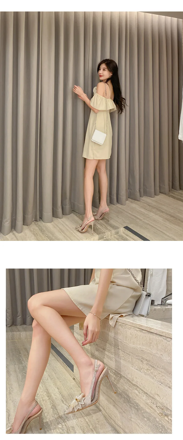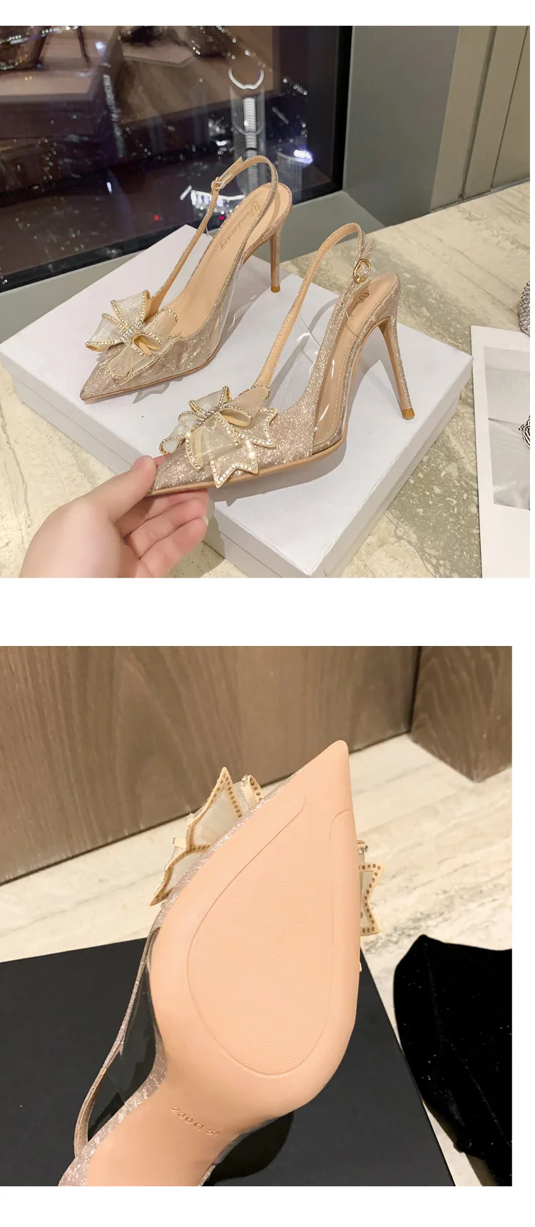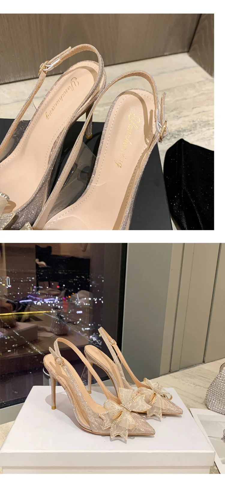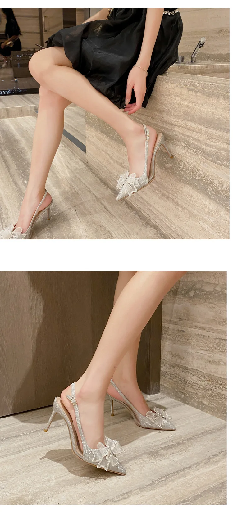 New Pointed Bride Wedding Shoes Rhinestone Bow High Heels Sandals Stilettos Slipper Female Ladies Low Heels