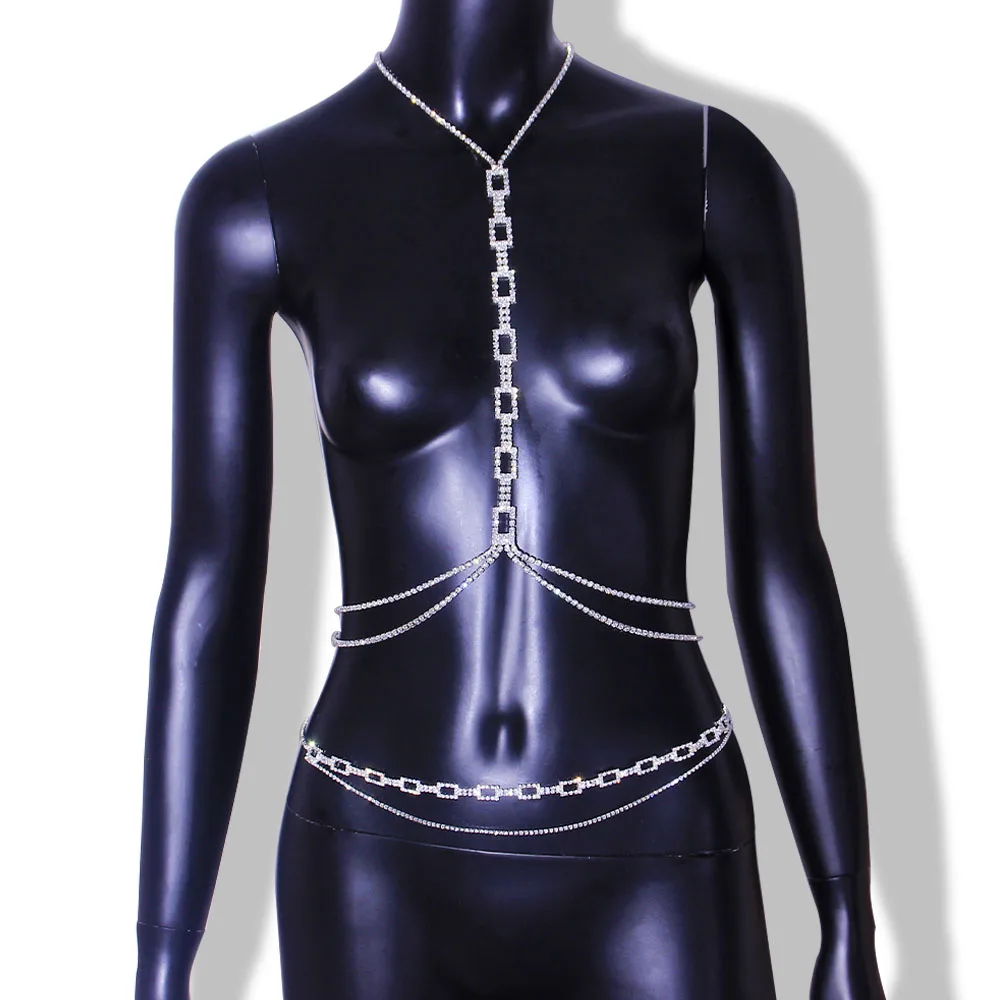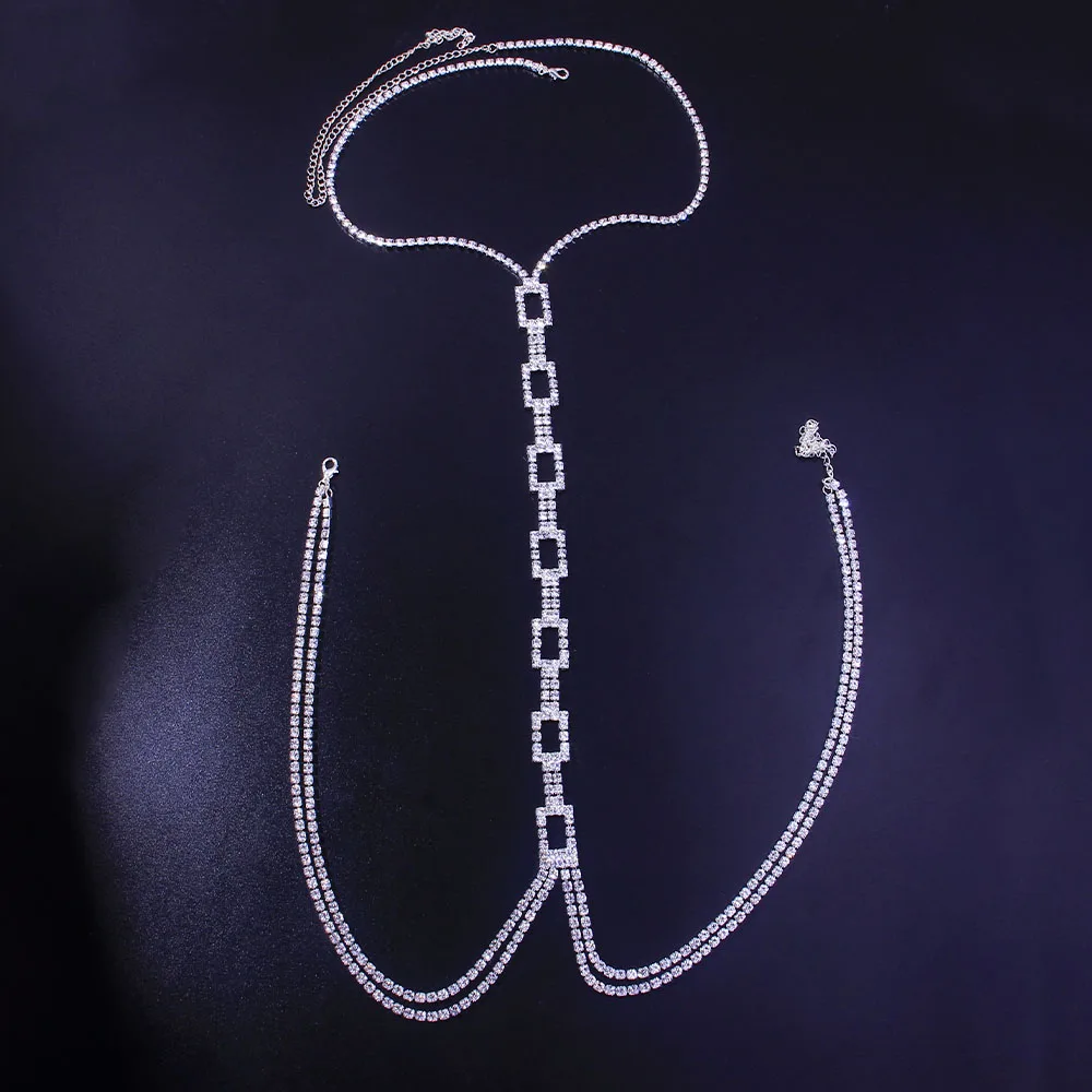 Item:Body Chain Product name:Rhinestone Square Geometric Multilayer Waist Chain Body Chain Color:Silver,Gold Occasions: Party, Festivals,  Wedding, Clubs, Get-together, Others Size:Adjustable We support wholesale ,Price friendly,Welcome to consult.