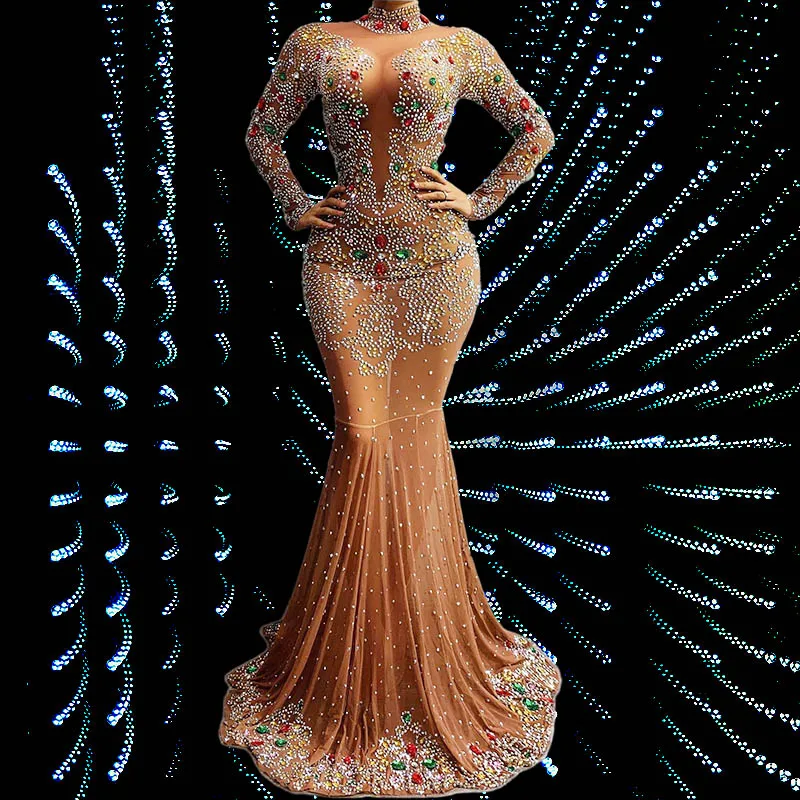 NOVANCE Y1752 womens fashion stylish clothing Elegant Brown Dazzling Jewel Fishtail wedding dress princess frock for black women