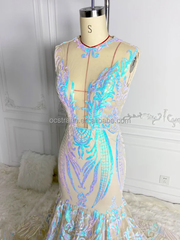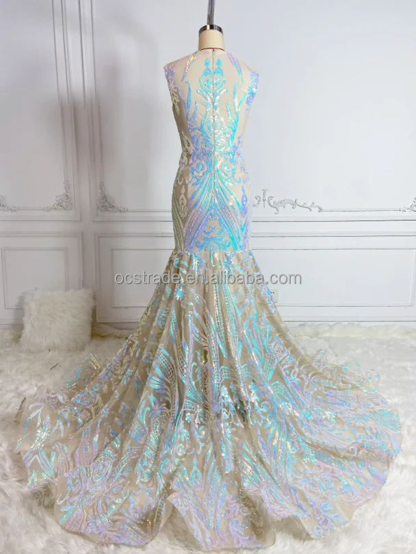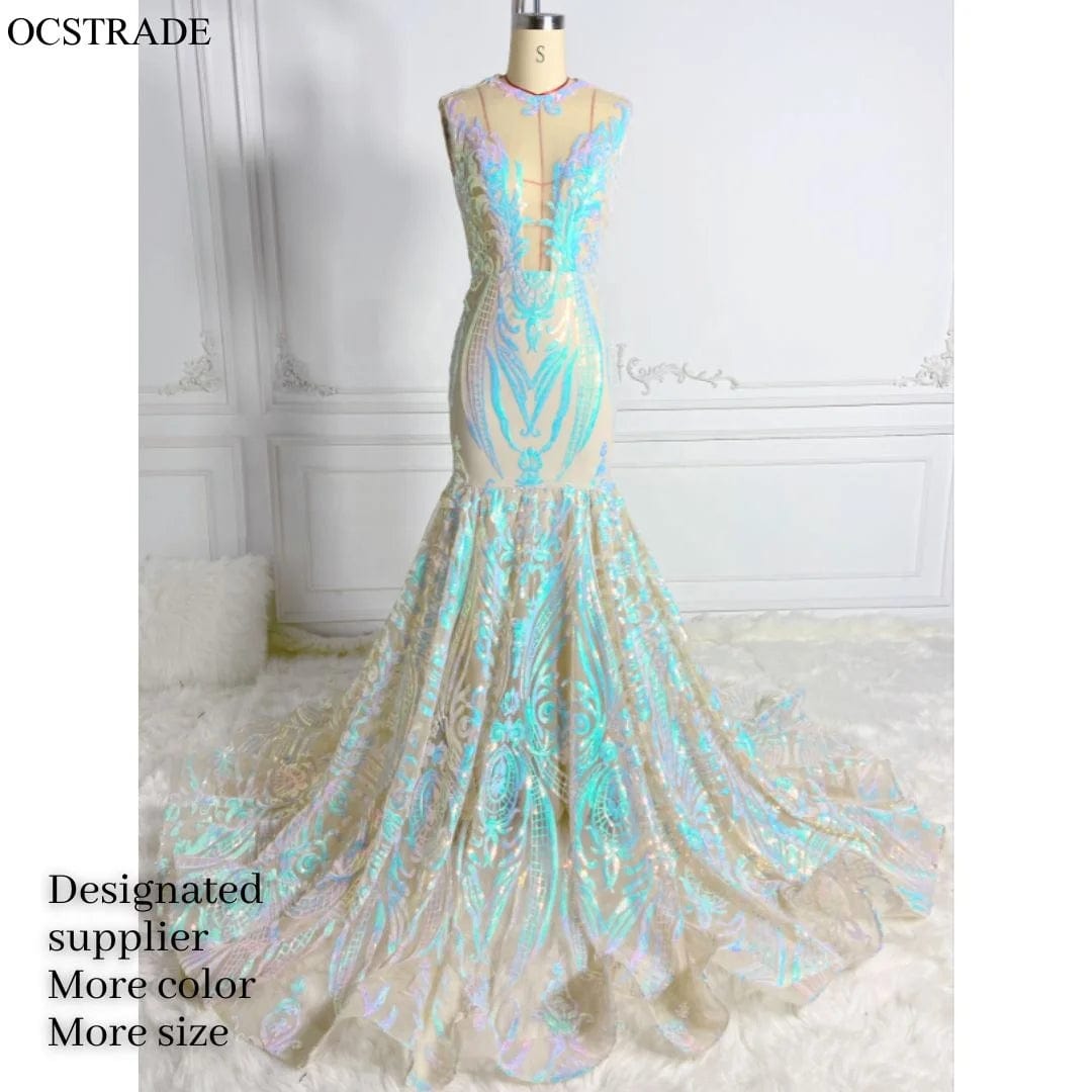 Ocstrade Clothing Manufacturers Custom Sparkly Evening Dresses Glitter Sequin Plunging Neckline Trumpet Long Train Prom Dress