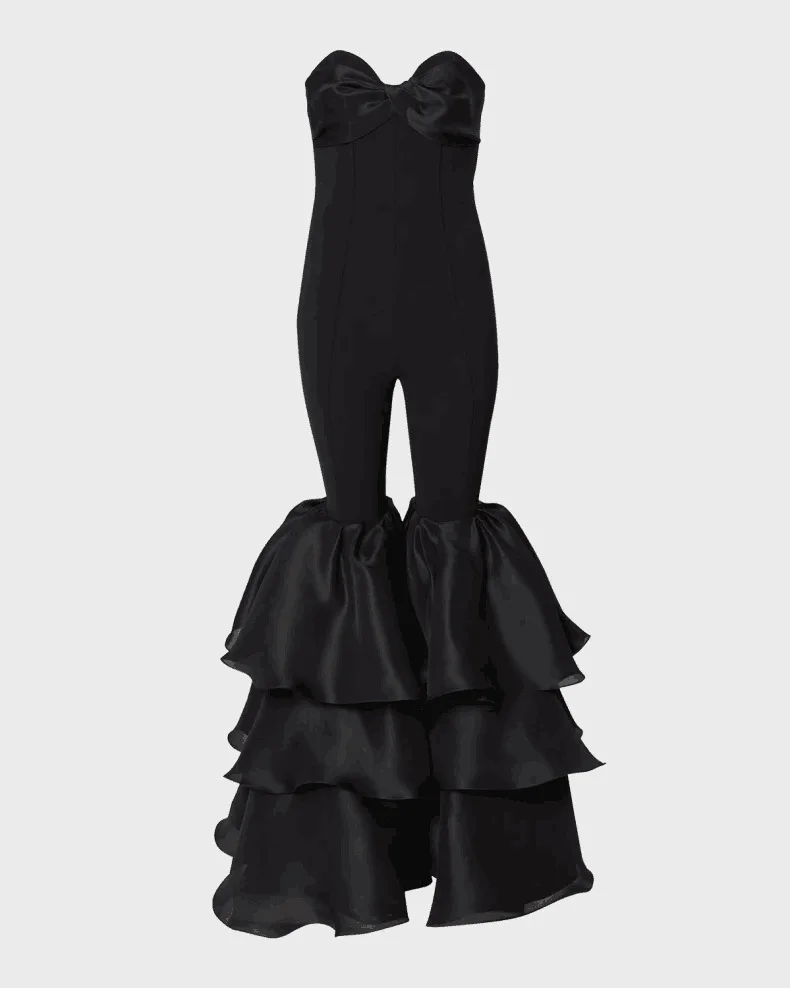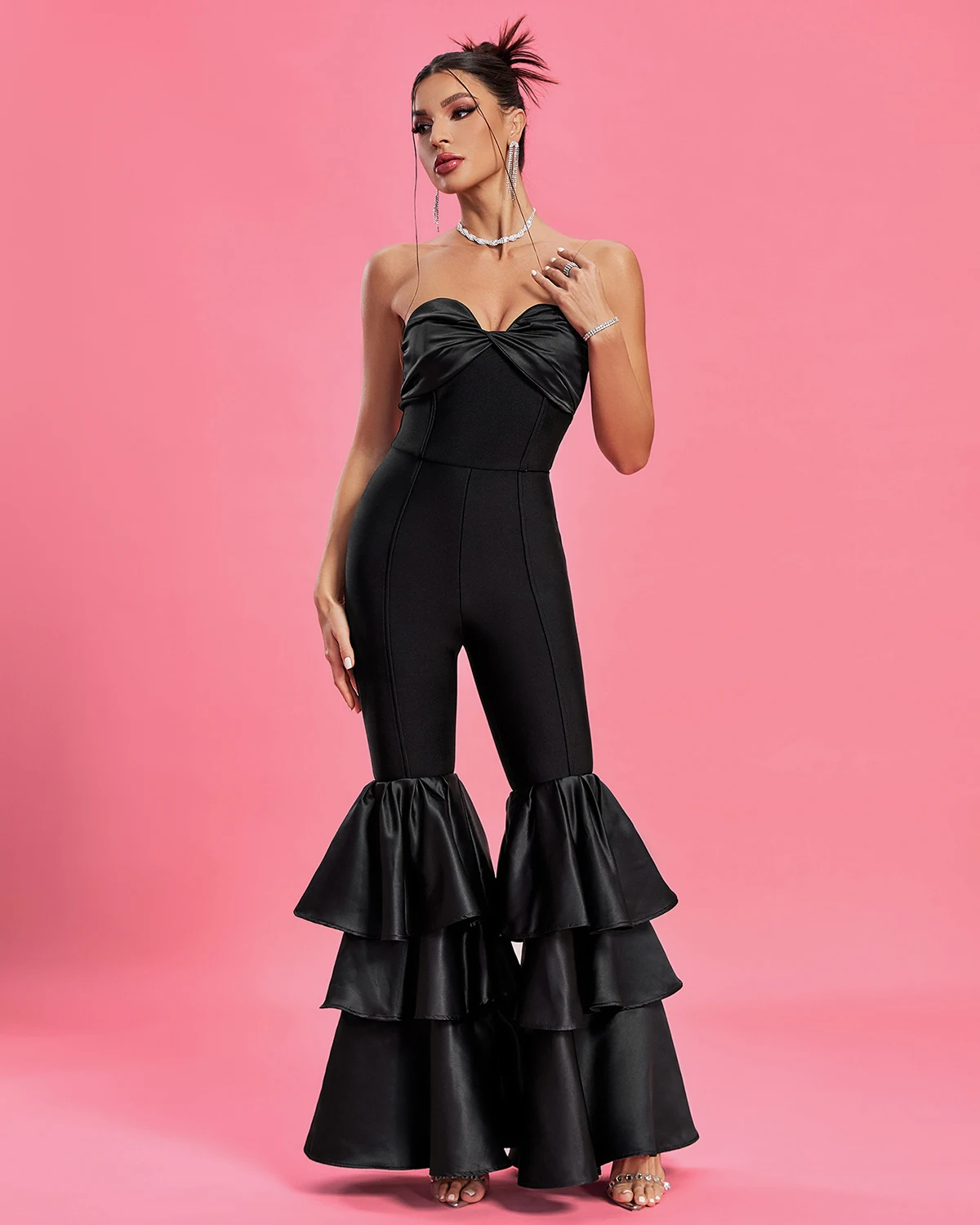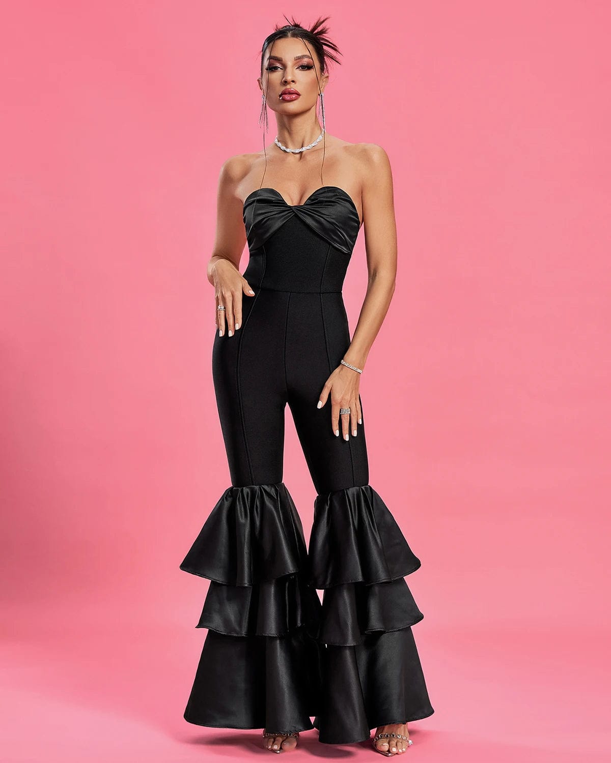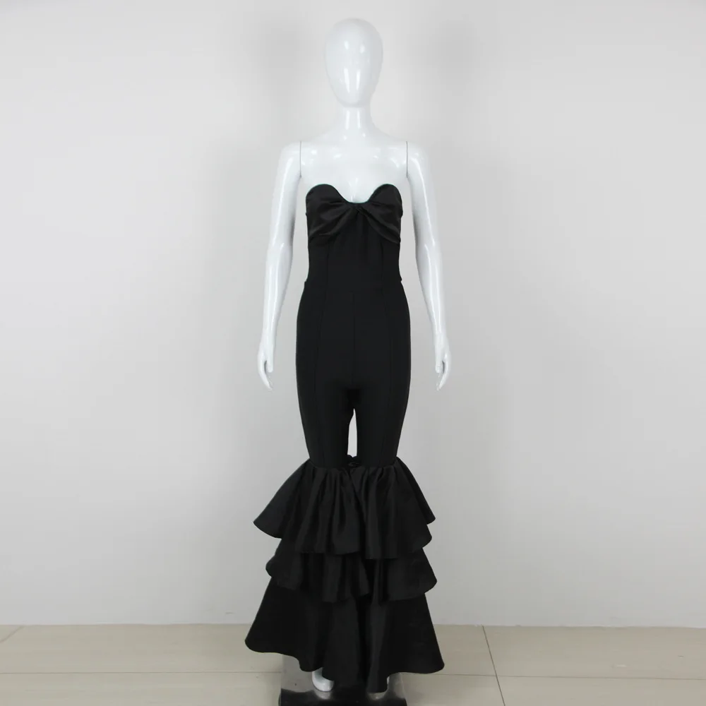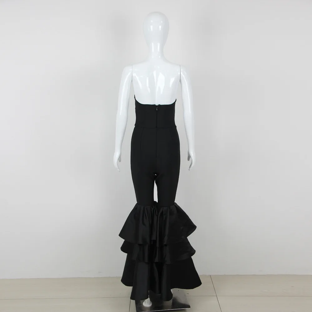 Ocstrade Fashion Ladies Winter Clothing Puffy Pant Foot Bandage Jumpsuit Customize Backless Zipper Black Flare Jumpsuit Women