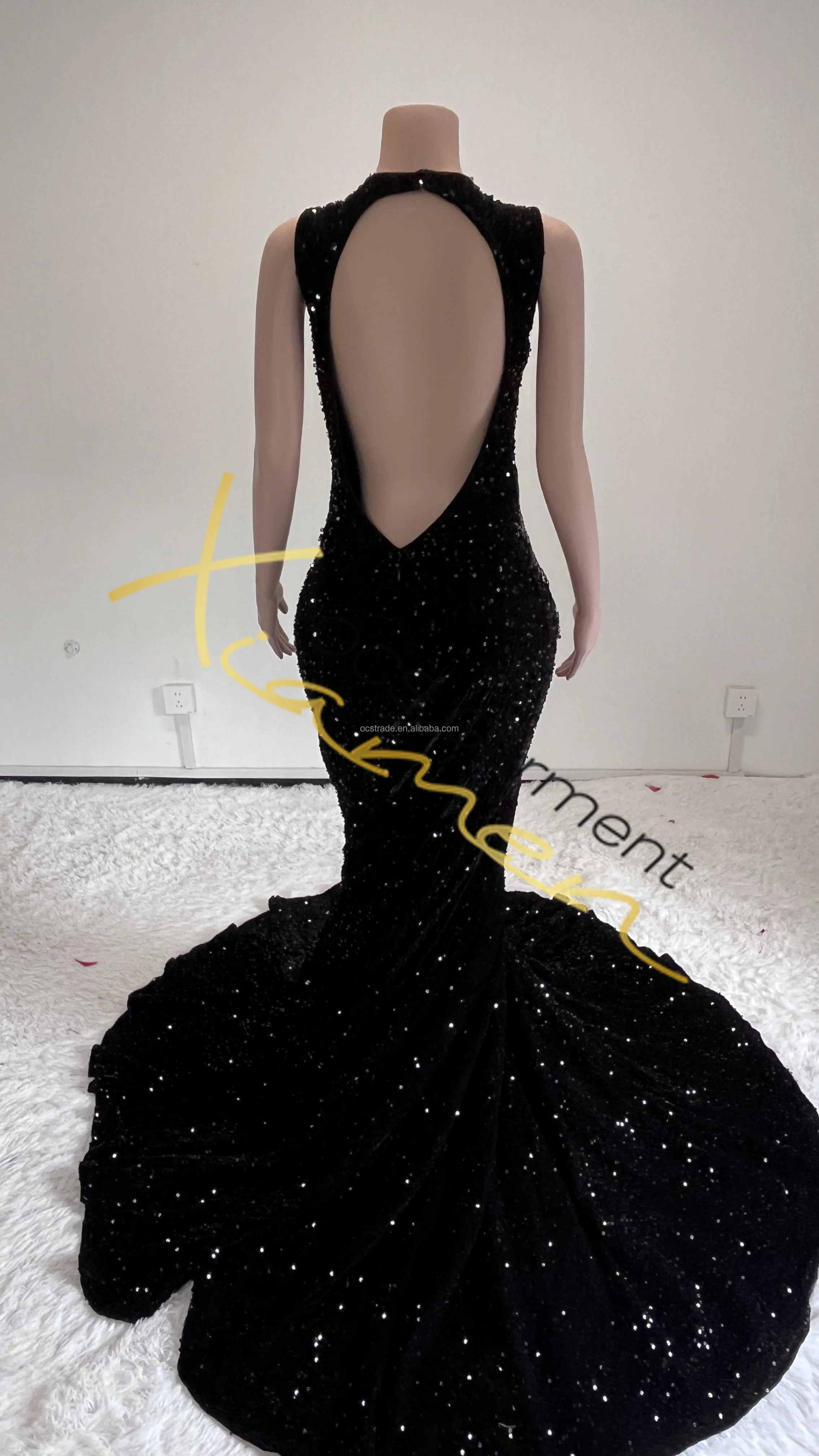 Ocstrade Summer Boutique Clothing Backless Black Sequin Maxi Dresses Beaded Rhinestone Women's Long Gown Evening Dresses 2024