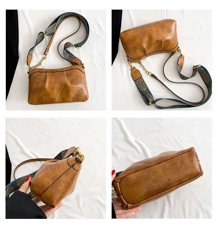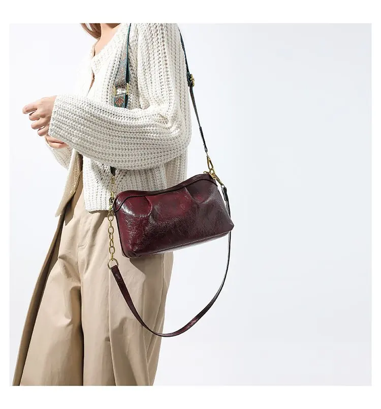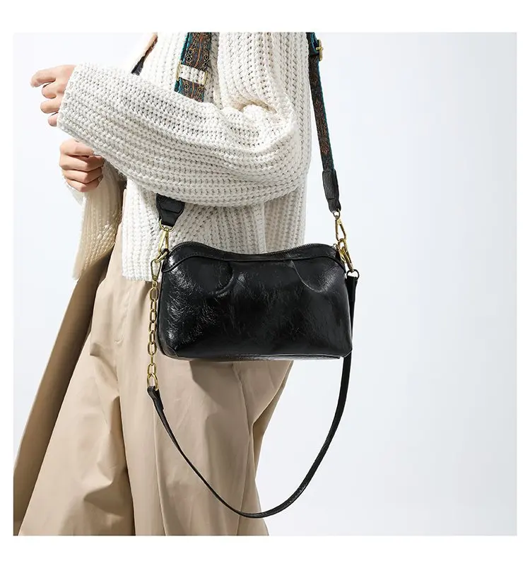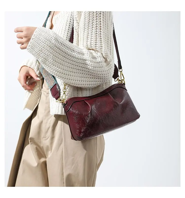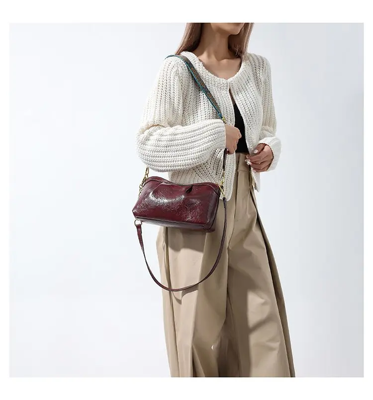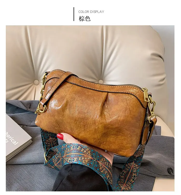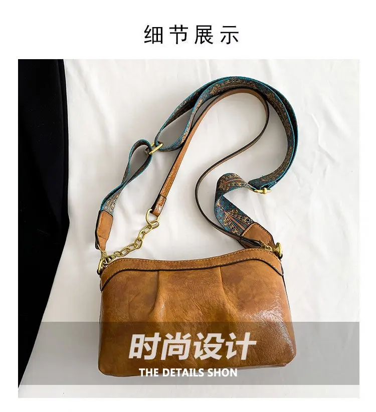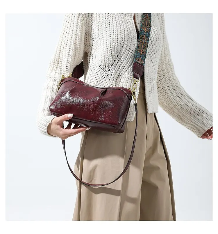 Oil Wax PU Leather Cross Body Small Bag for Women Fashionable and Versatile Shoulder Ruched Hand Bag Ladies Casual Phone Bag