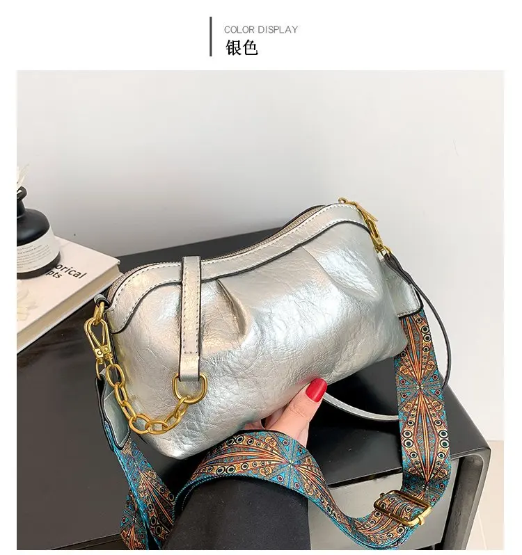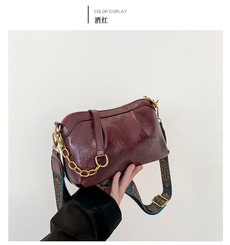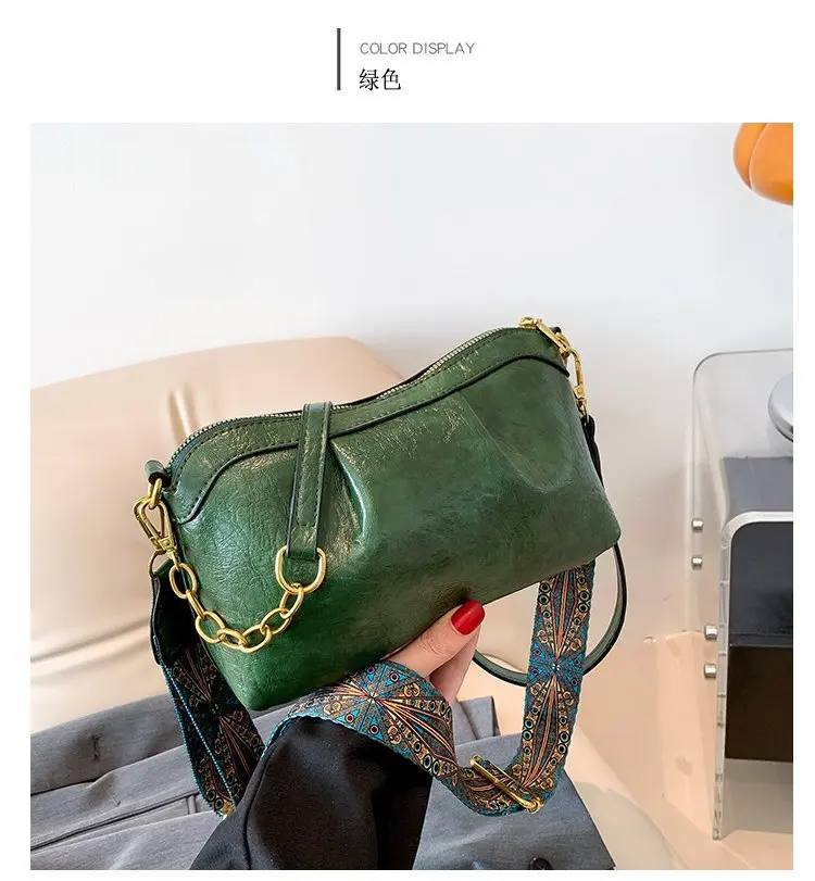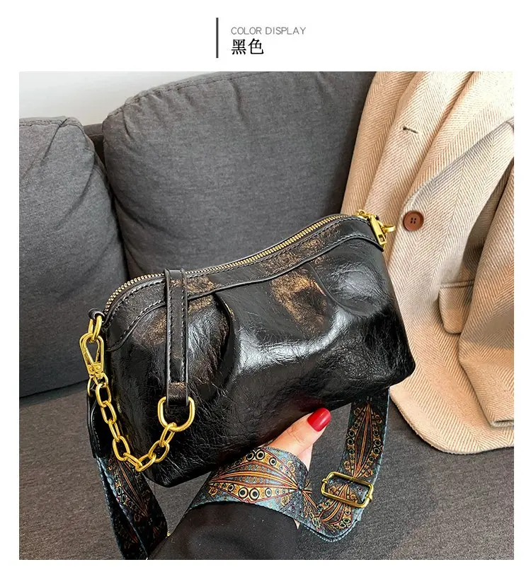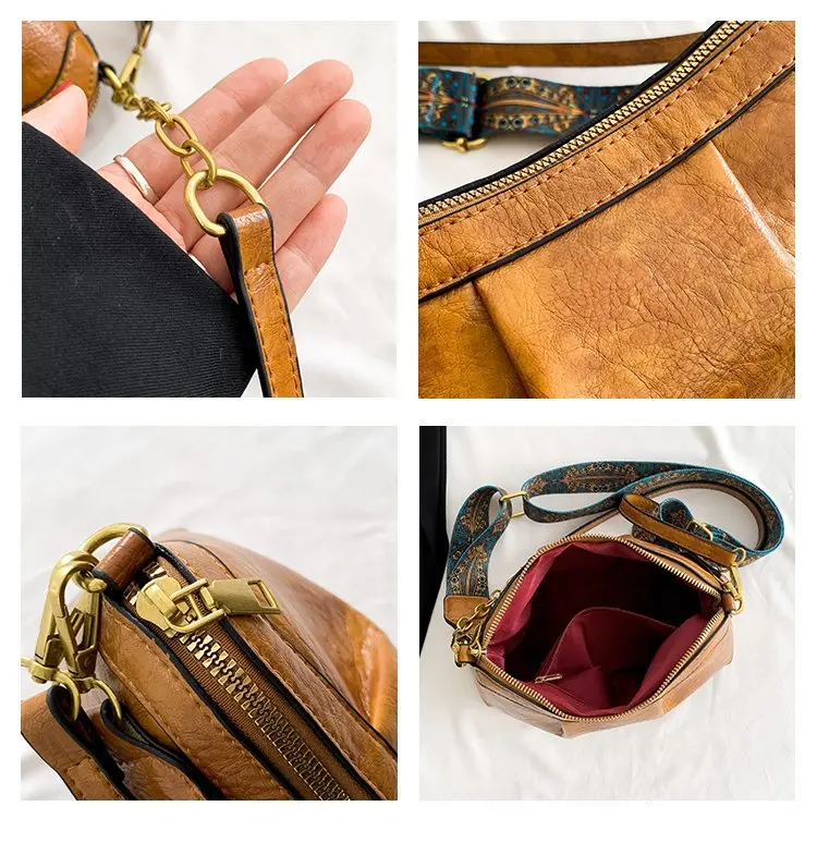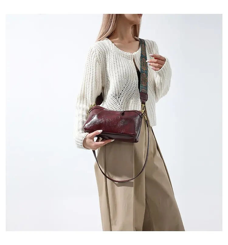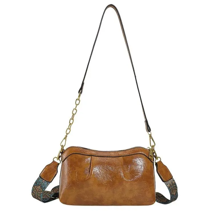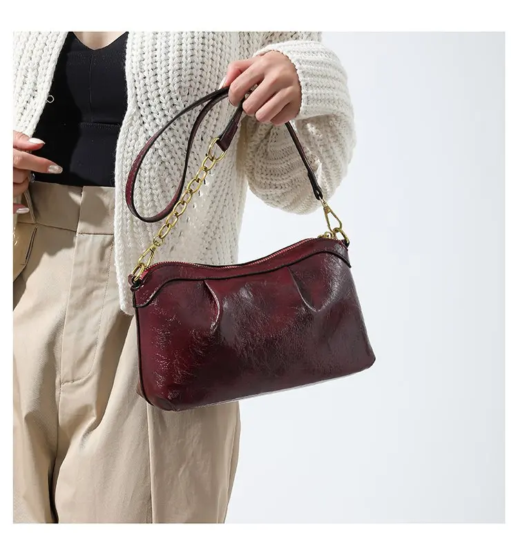 Oil Wax PU Leather Cross Body Small Bag for Women Fashionable and Versatile Shoulder Ruched Hand Bag Ladies Casual Phone Bag