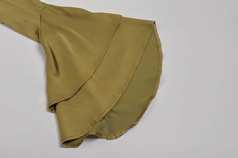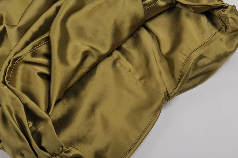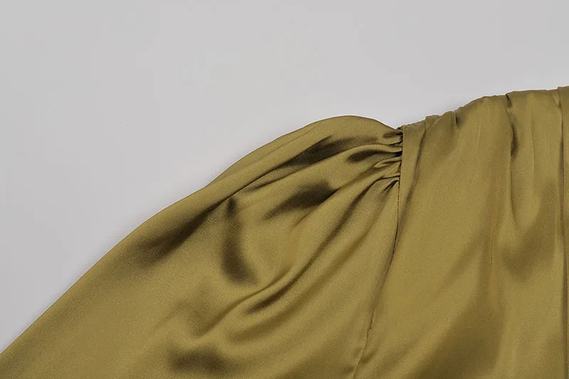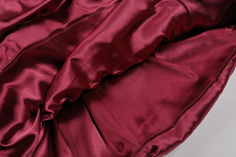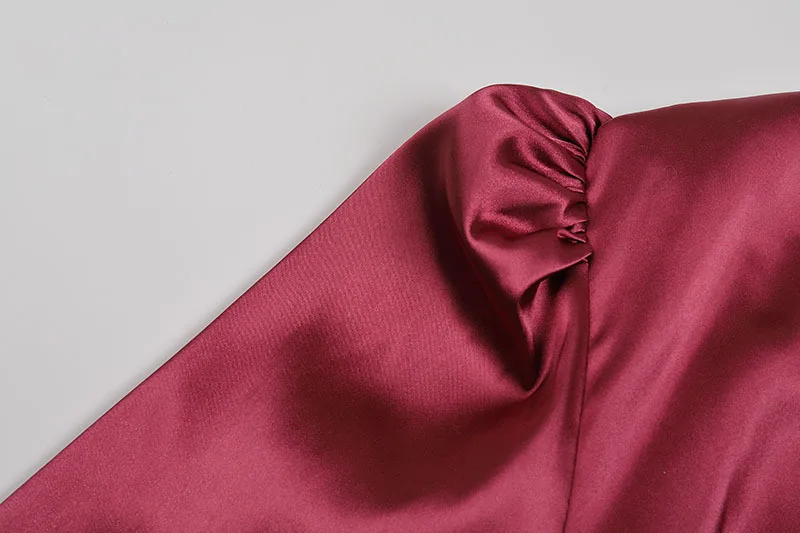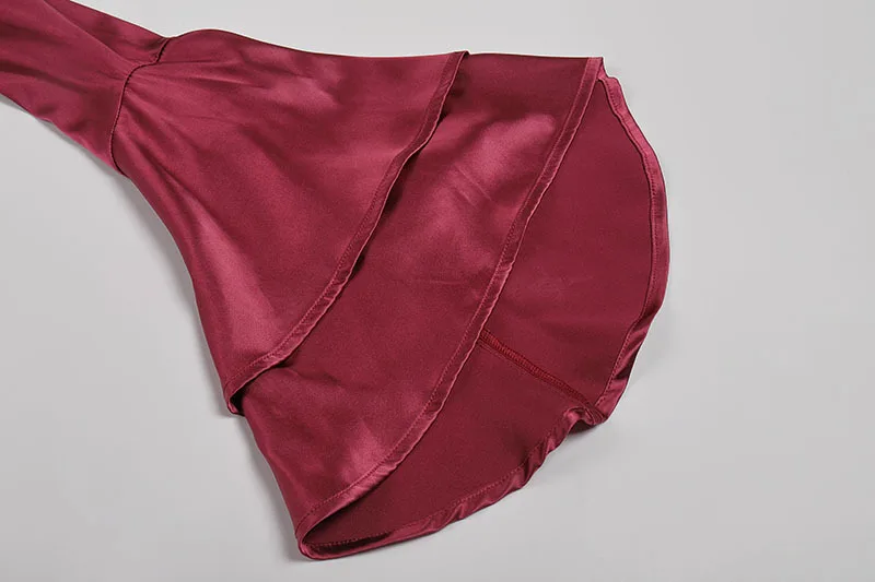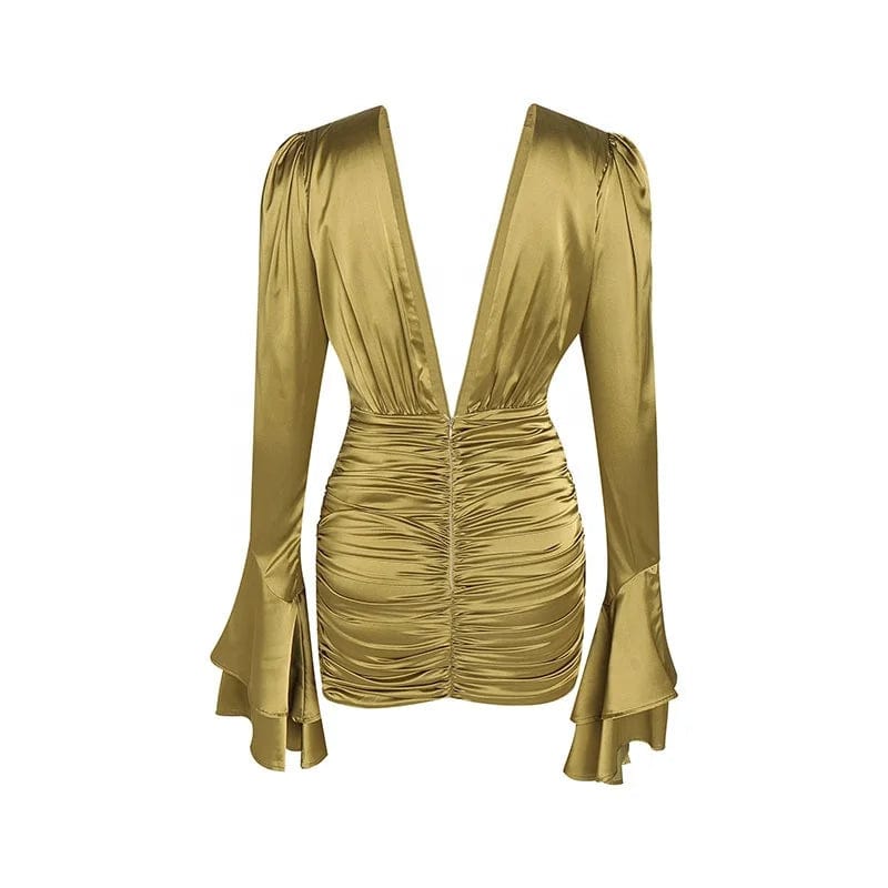 OUDINA Stylish Pleated Red Evening Elegant Trumpet Long Sleeve Women's Clothing Short Party Dresses
