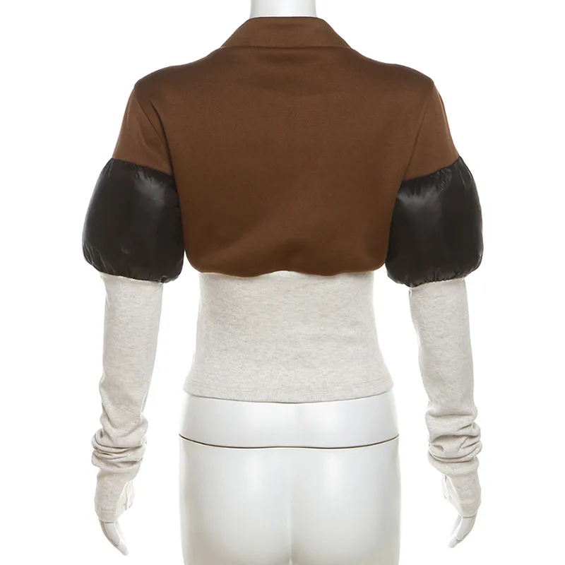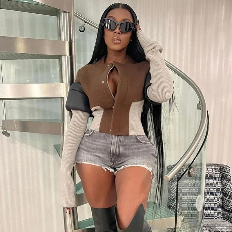 OUDINA Women's Clothing Patchwork Contrasting Color Slimming Street Style Short Baseball Ladies Jacket