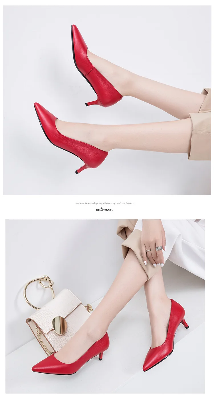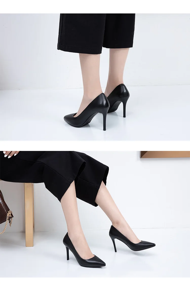 PDEP genuine cow leather Women's office Shoes 2023 point toe Stiletto Professional High Heels Work Shoes Women