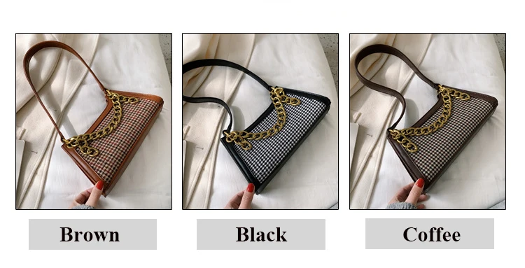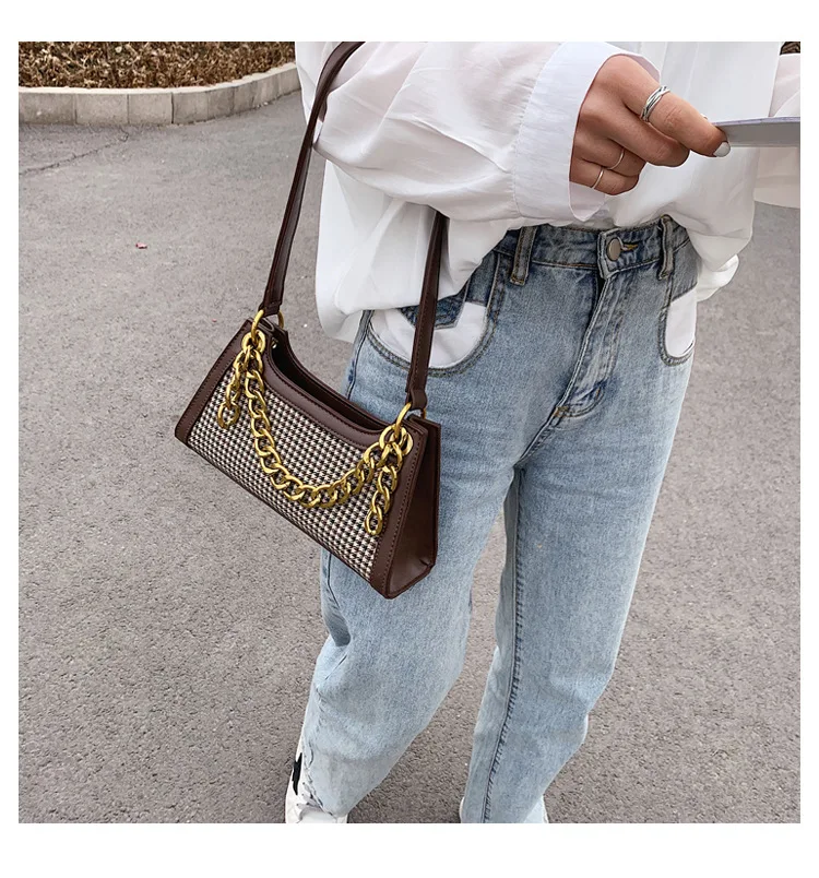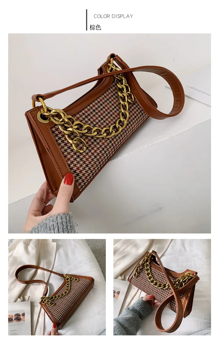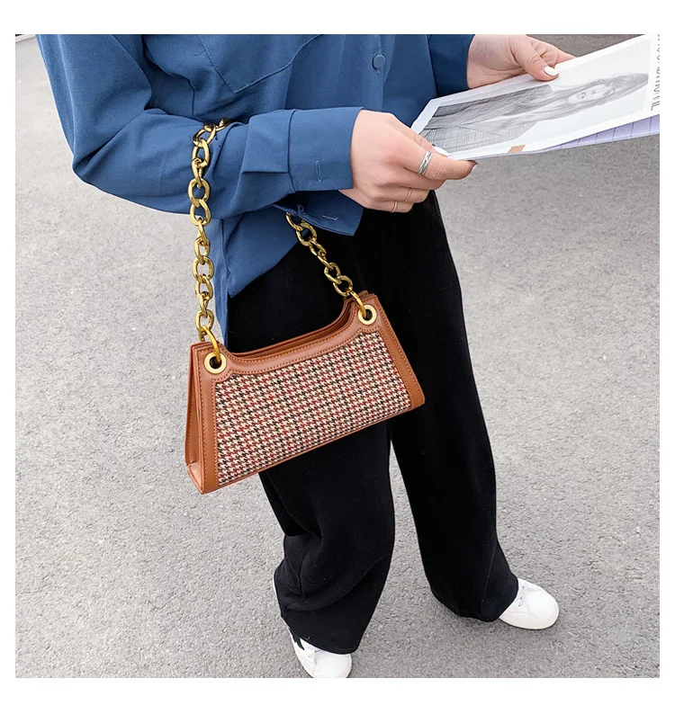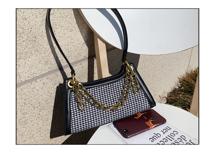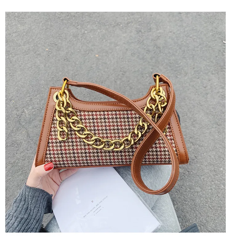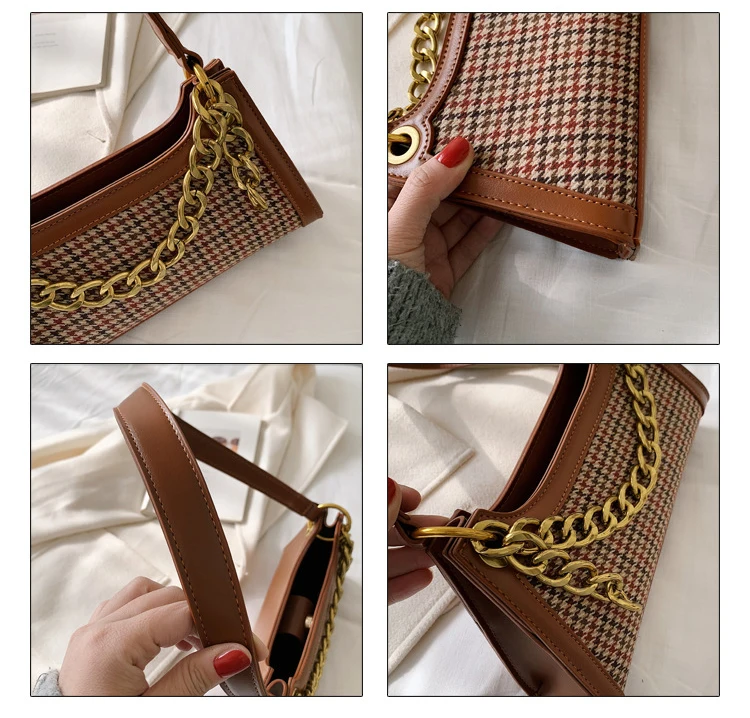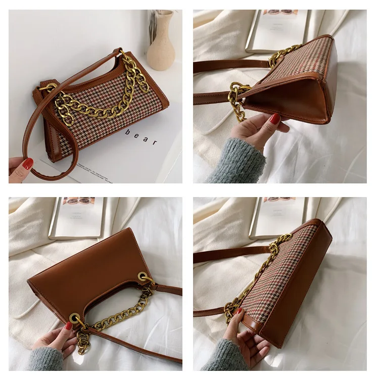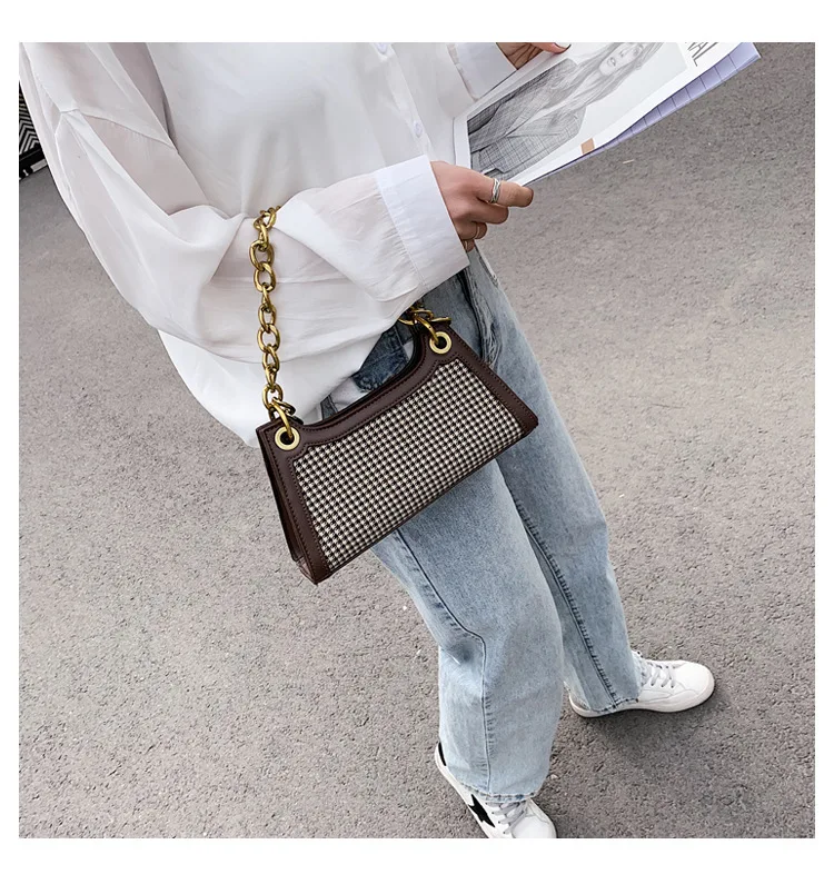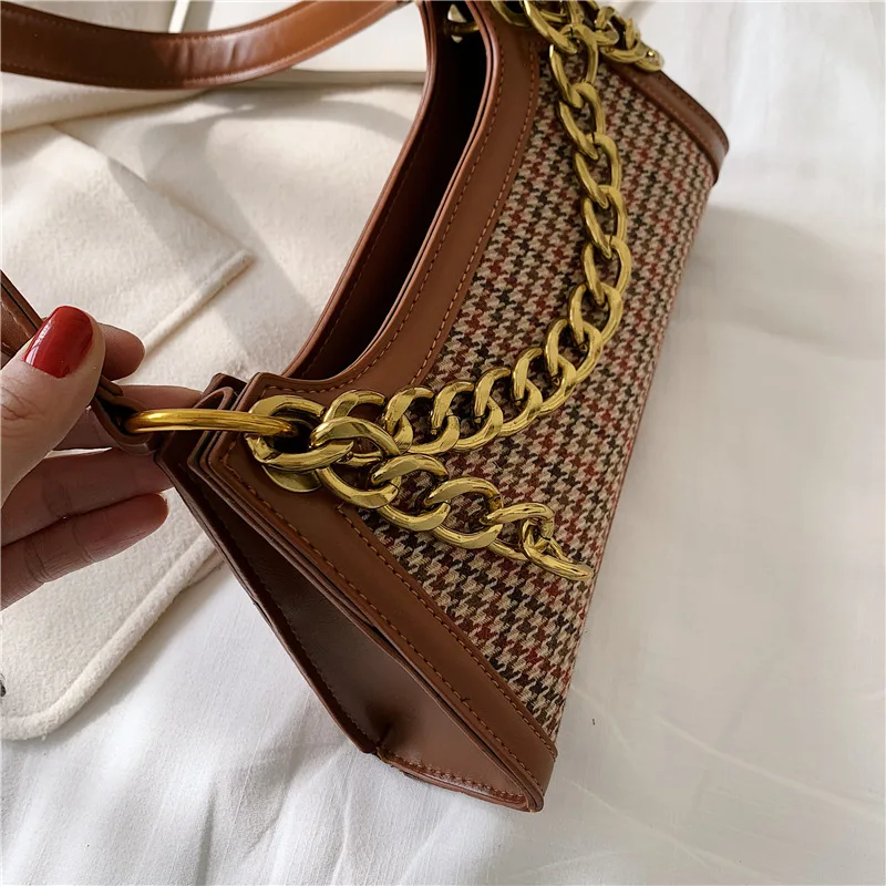 Plaid Designer Women Leather Handbags Chain Shoulder Bags Houndstooth Vintage Ladies Hand Bags