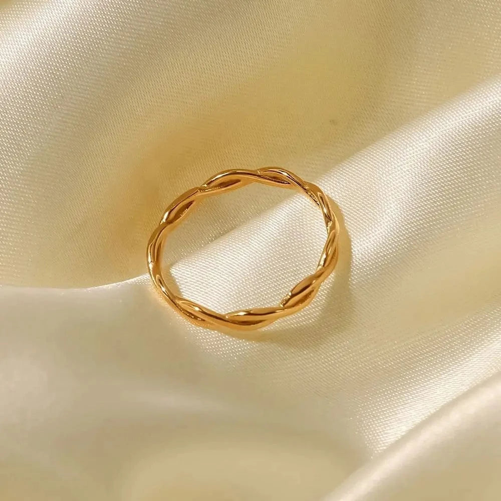 R2058 Dainty 18K Gold Plated Stainless Steel Twisted Linear Geometric Hollow Stacking Rings For Women