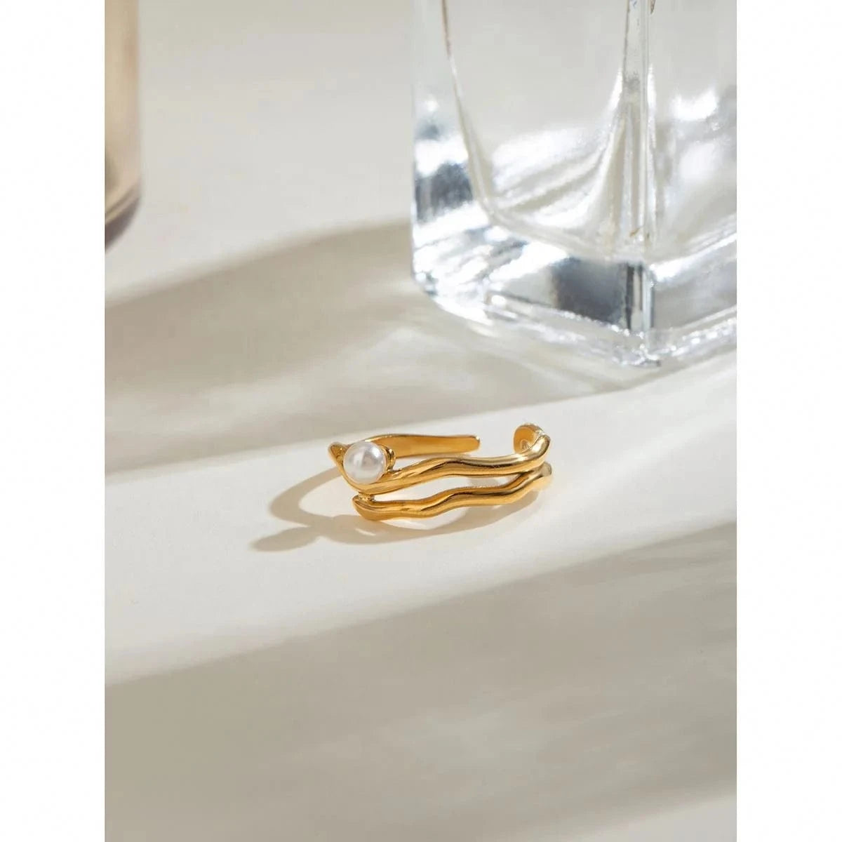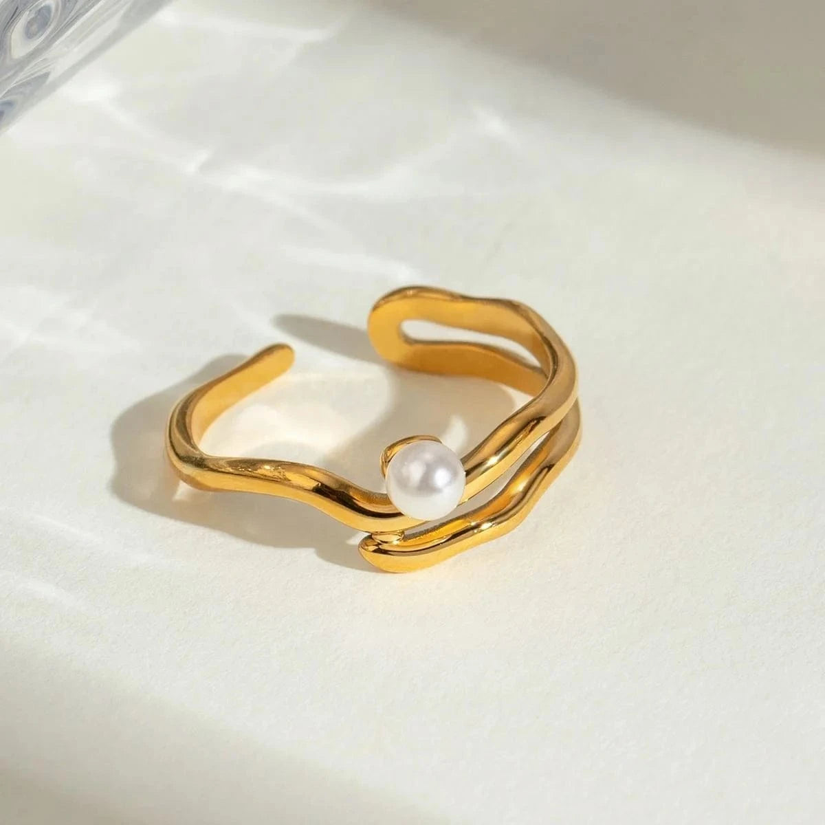 R2479 Delicate Women Jewelry 18K Gold Plated Stainless Steel Mother of Pearl Wave Open Adjustable Rings