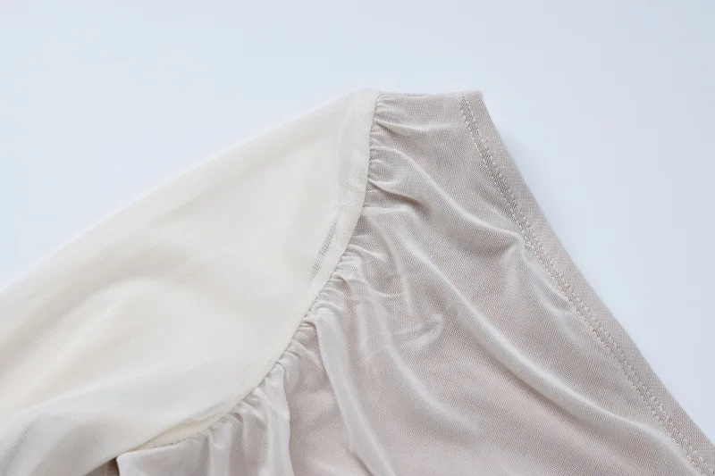 RNSHANGER Diagonal Collar Long Sleeve Midi Dress For Women Two Layer Mesh Backless Ruched Bodycon Club Party Sexy Long Dress