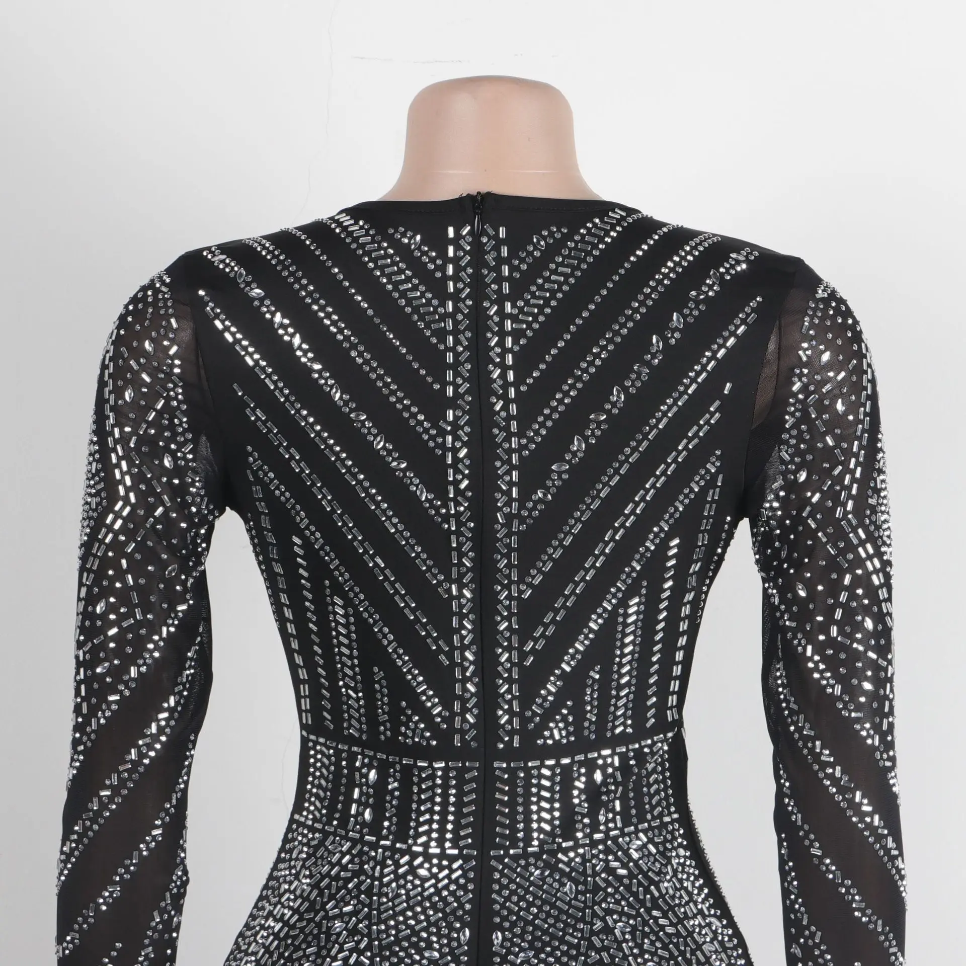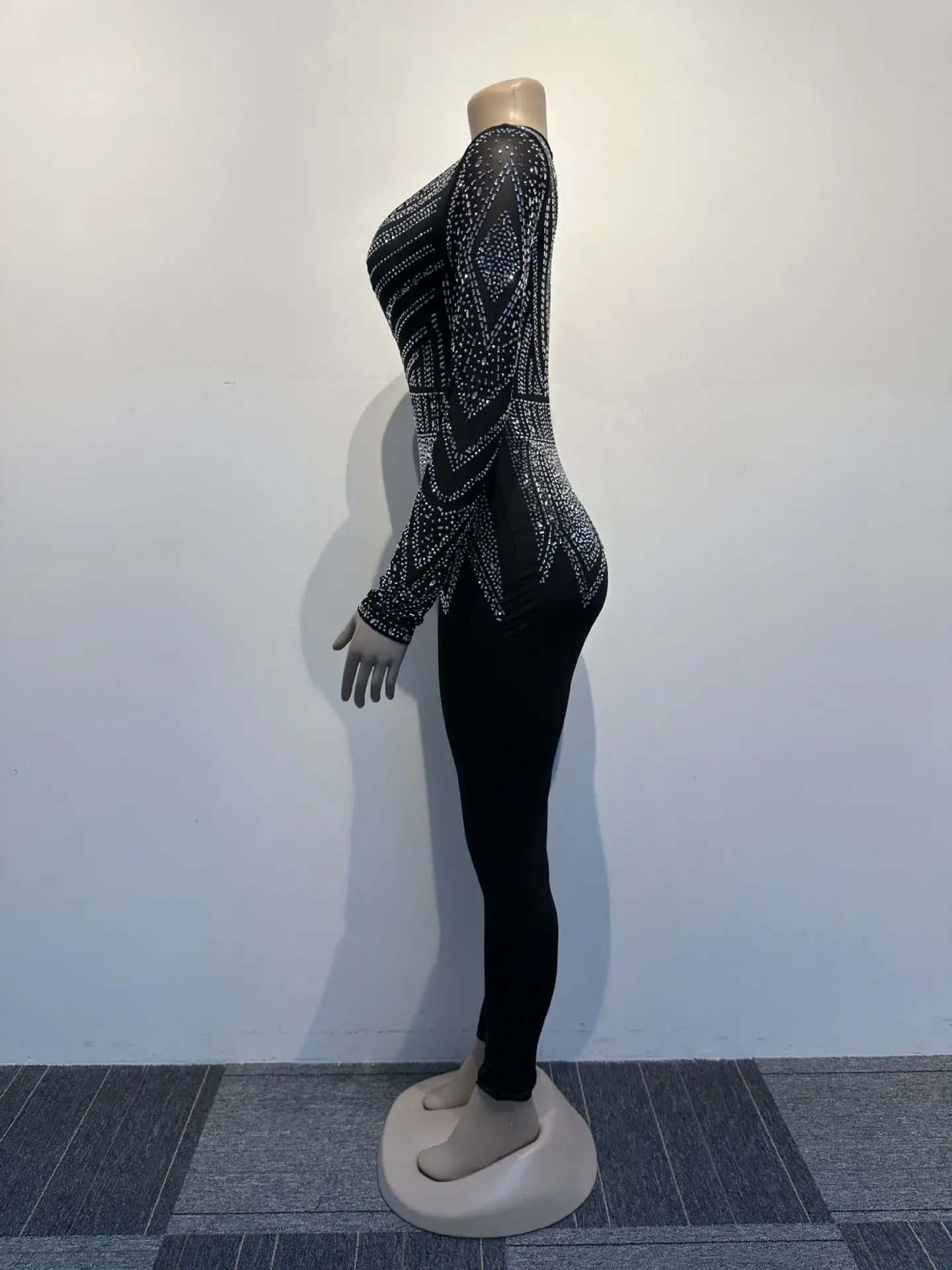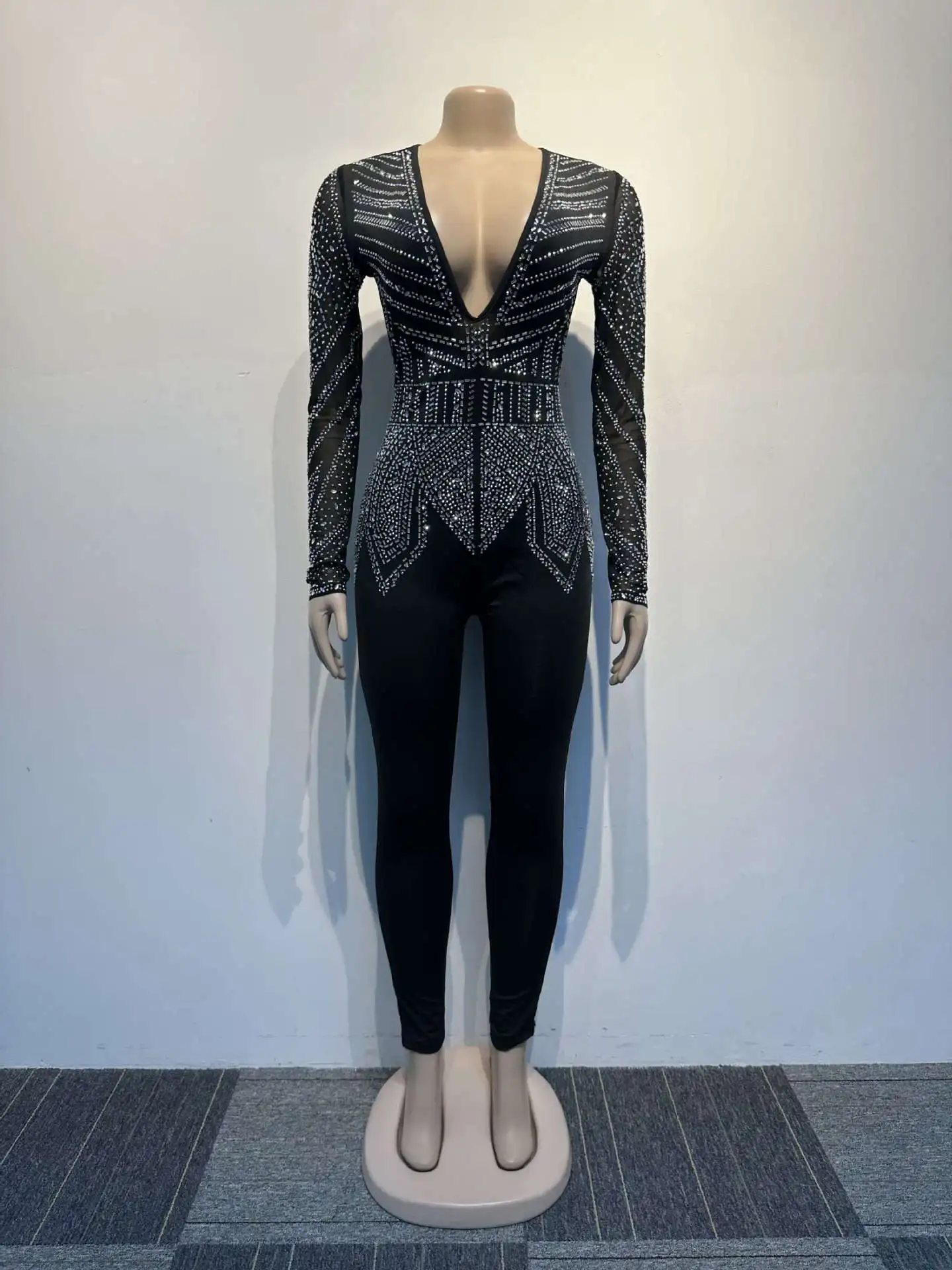 Sexy Long Sleeve Jumpsuits for Women Clothing 2023 Clubwear One Piece V Neck Playsuit Spandex Sexy Rhinestone Jumpsuit