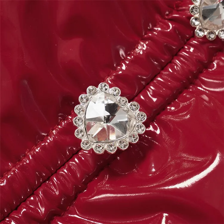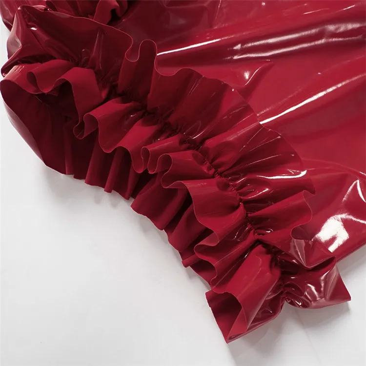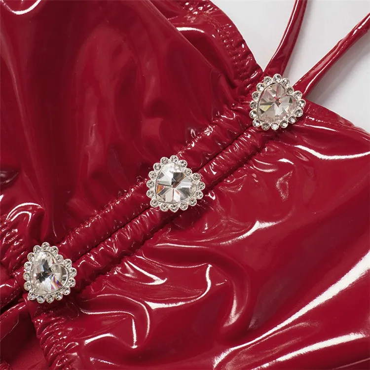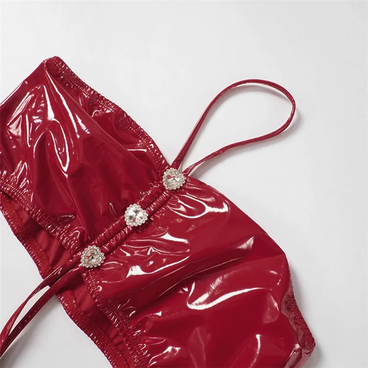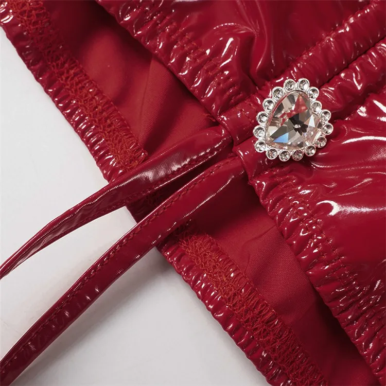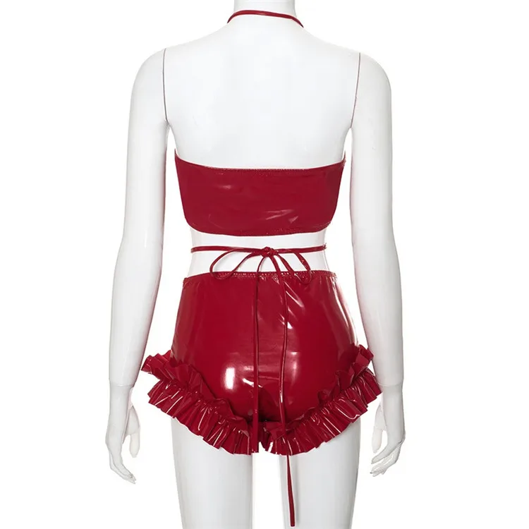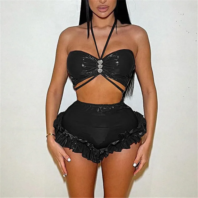 Sexy Love Diamond Bikini Halter Neck Wrap Chest Pu Leather High Waist Shorts Ruffle Set Summer Beach Set