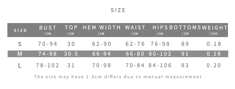 PS: There may 1-3cm difference by manual measurement.Unit: CM