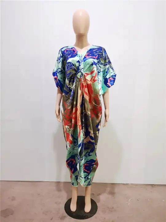 Summer Women's Printed Wide Satin Loose Plus Size Short Sleeve Casual Dresses