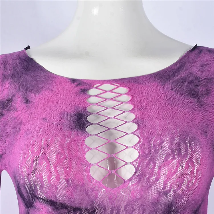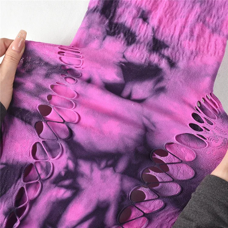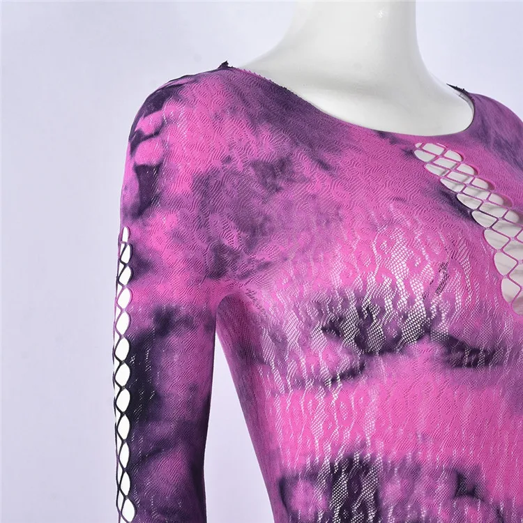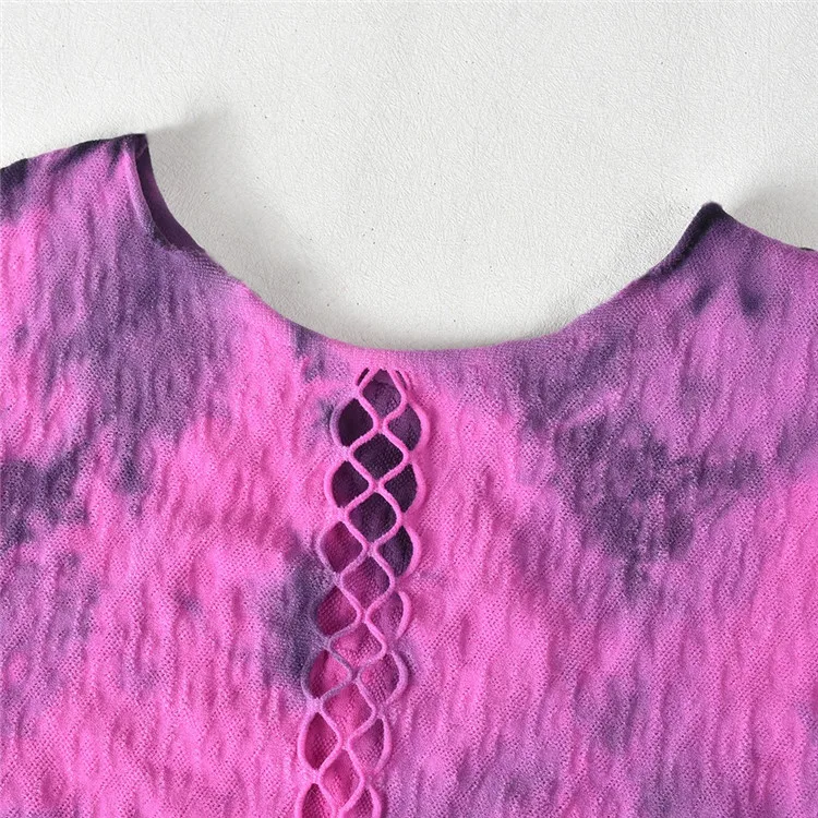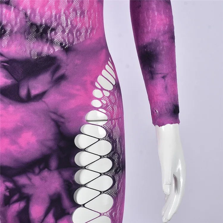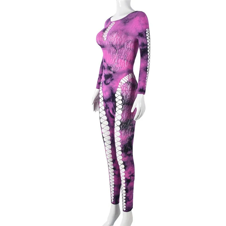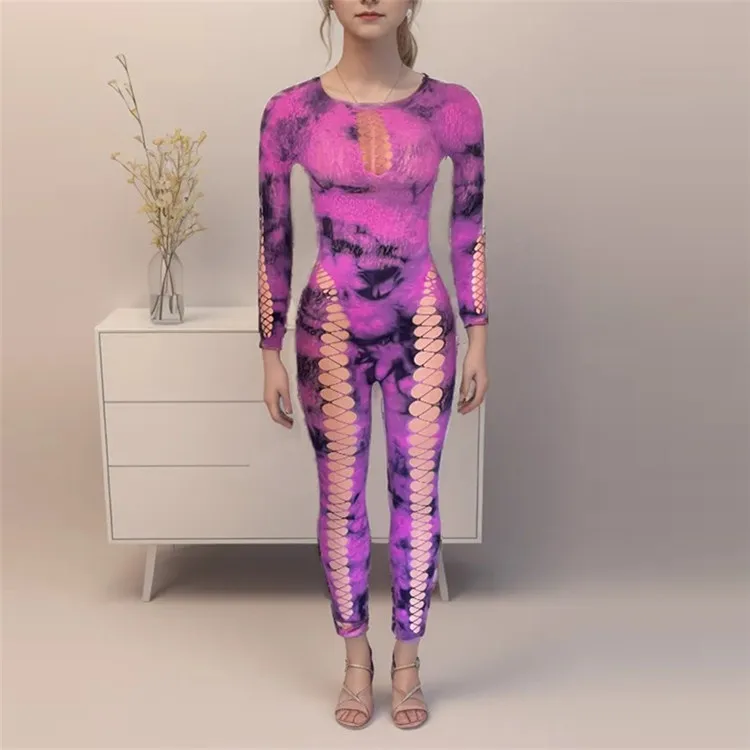 Tie Dye Print Women High Waist Bodycon Elastic Cut Out Side Jumpsuit for 2024 Summer Sexy Playsuit