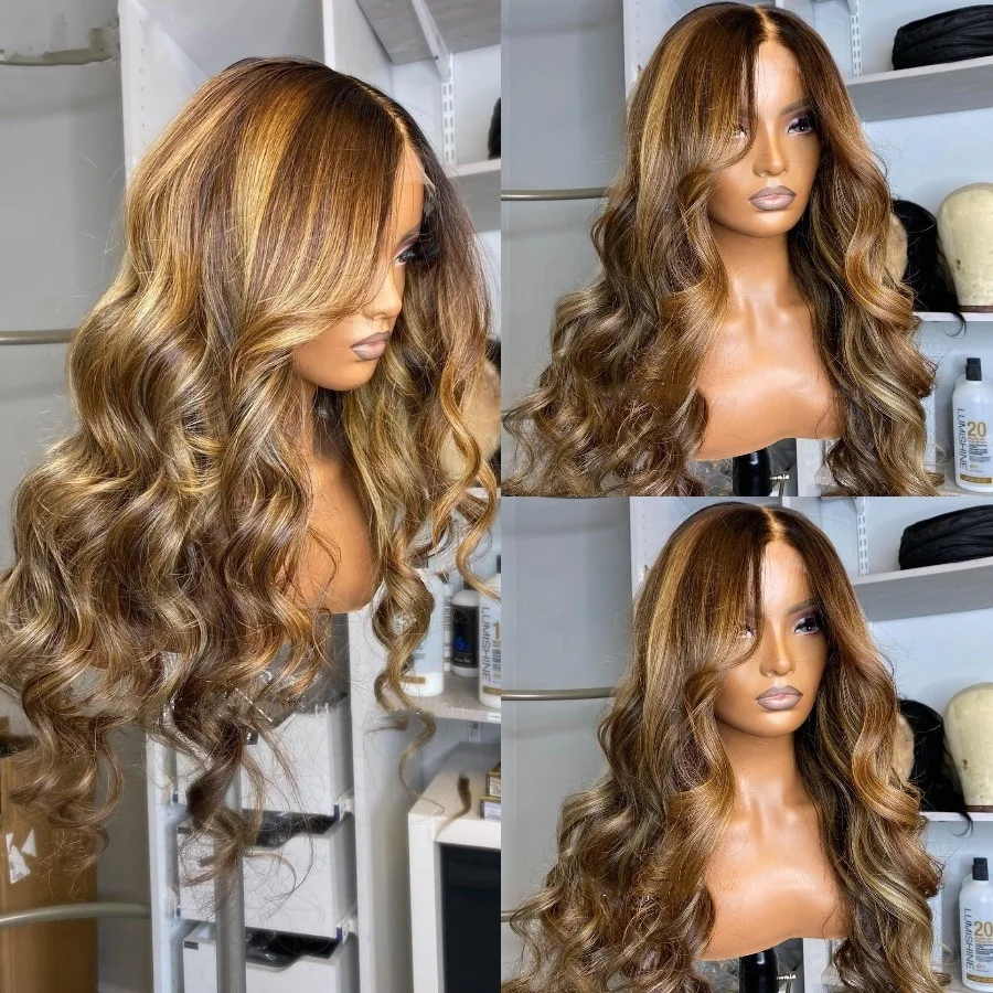 Transparent Swiss Lace Sheenreal Honey Blonde Highlight Human Hair 13*6 MAX Lace Front Wigs On Sales