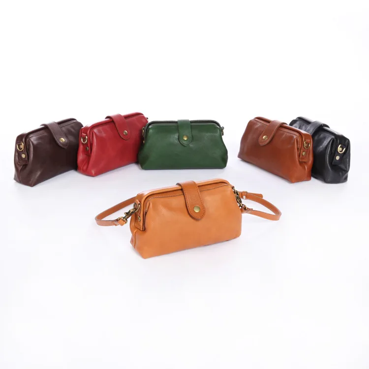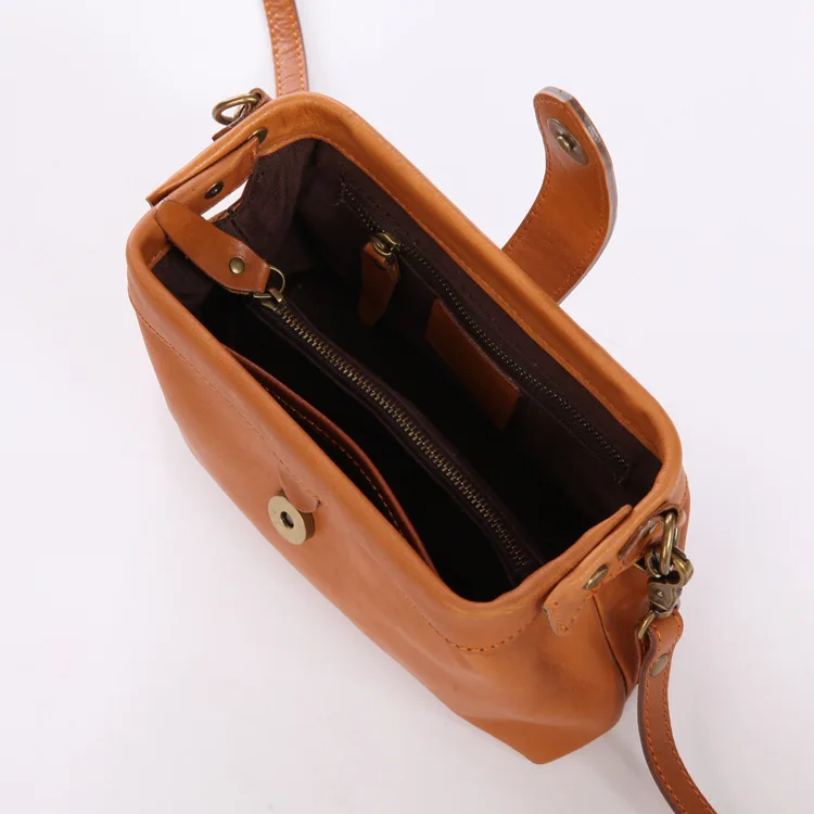 Vintage Genuine Leather Crossbody Shoulder Bag with Shoulder Straps Messenger Bag For Women