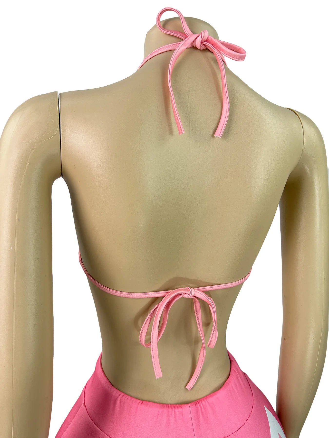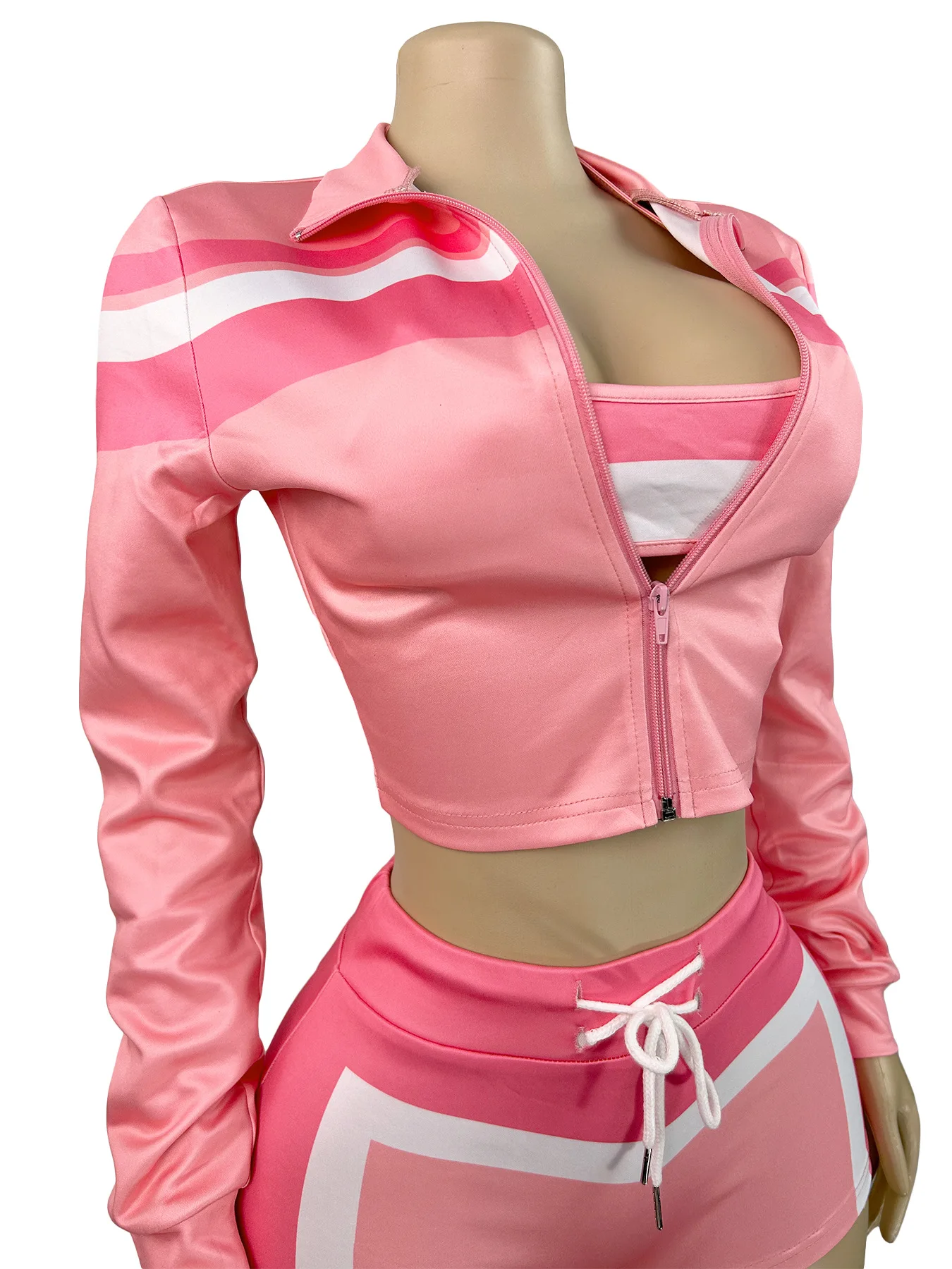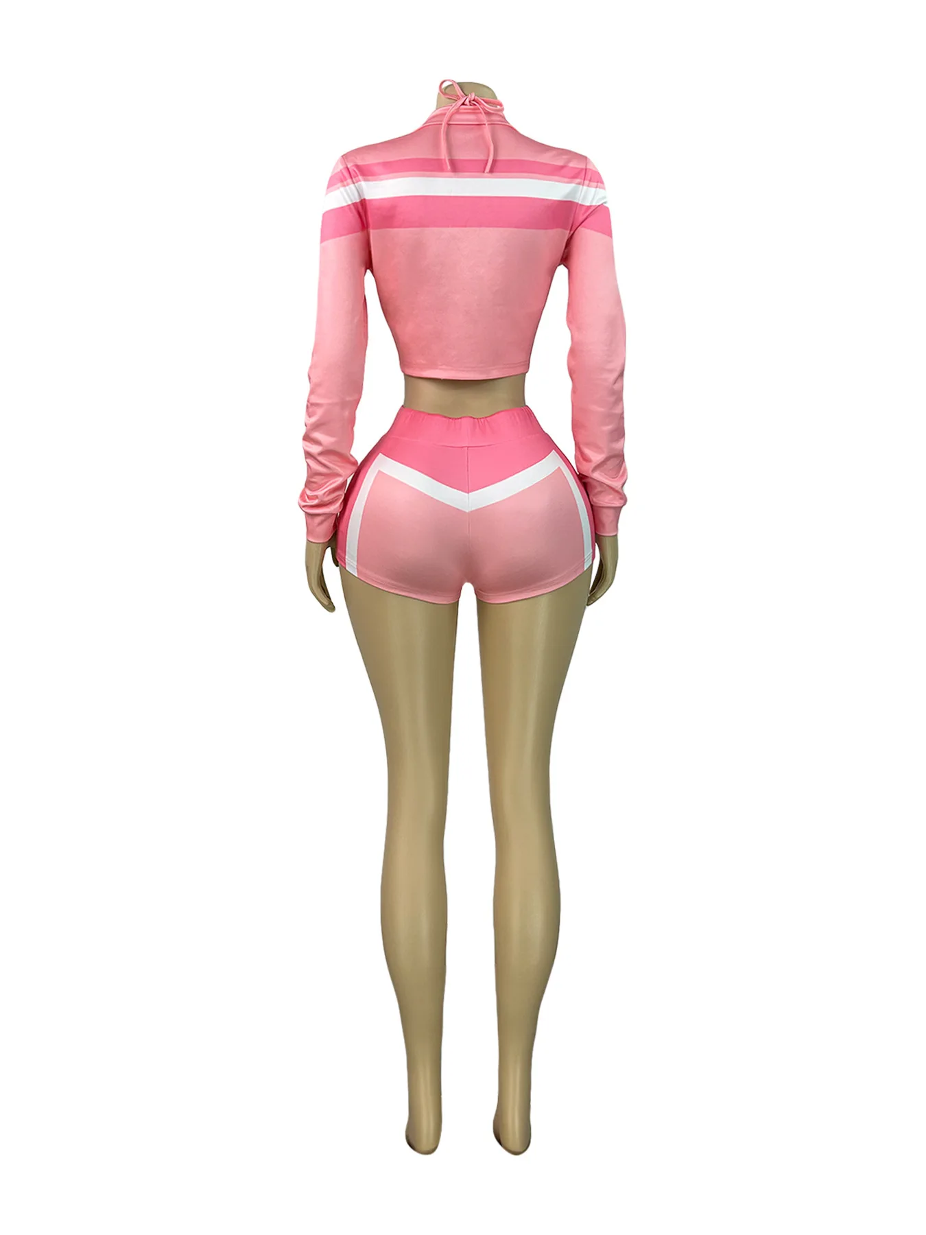 Weird Puss Contrast Patchwork 3 Piece Set Women Halter Strapless Tops+Cardigan Crop Jacket+Drawstring Shorts Sexy Sporty Outfits