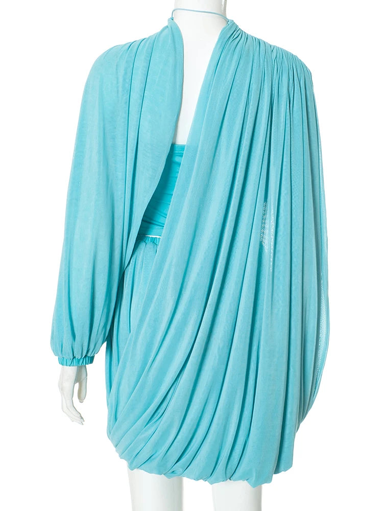 Weird Puss Elegant Women 2 Piece Set Strapless Shawl Vest Crop Tops+Irregular Pleats Skirts Sexy Matching Club Party Trend Suit