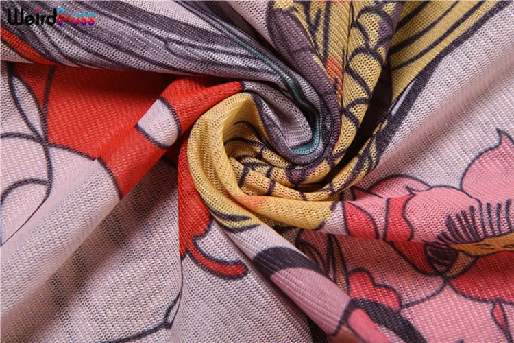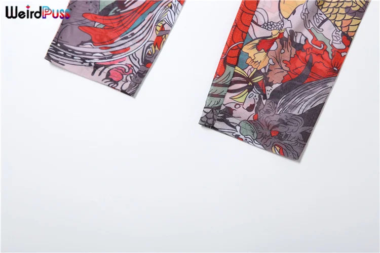 Weird Puss See Through Jumpsuit Women Backless Dragon Print Short Sleeve Fitness Activity Workout Overalls Slim Stretch Clubwear