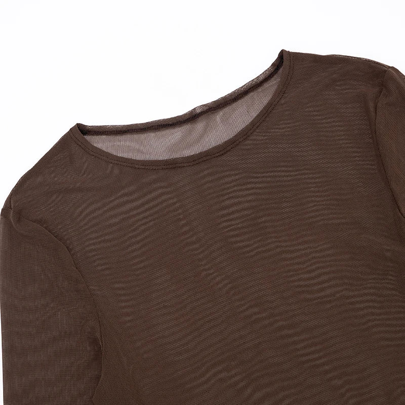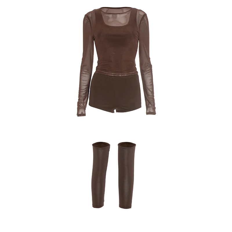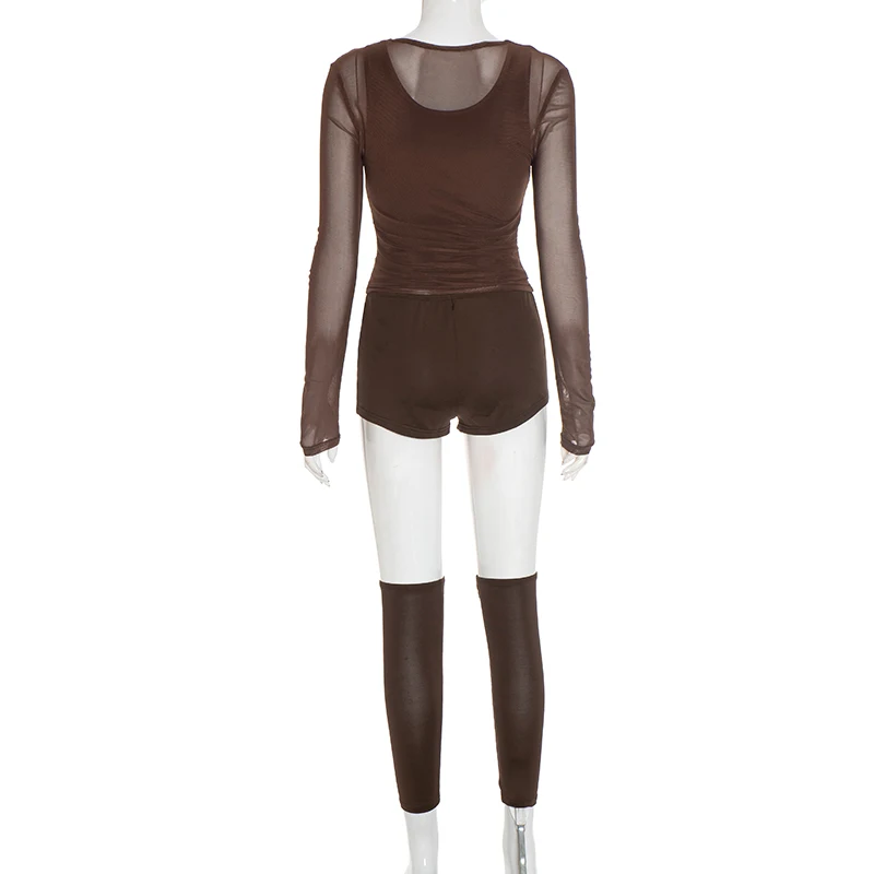 Weird Puss Sexy Casual 3 Piece Set Mesh Full Sleeve o-Neck Crop Tops+Shorts+Foot Cover Matching Autumn Trend Streetwear Outfits