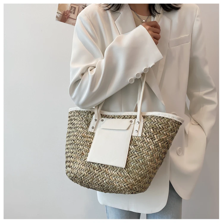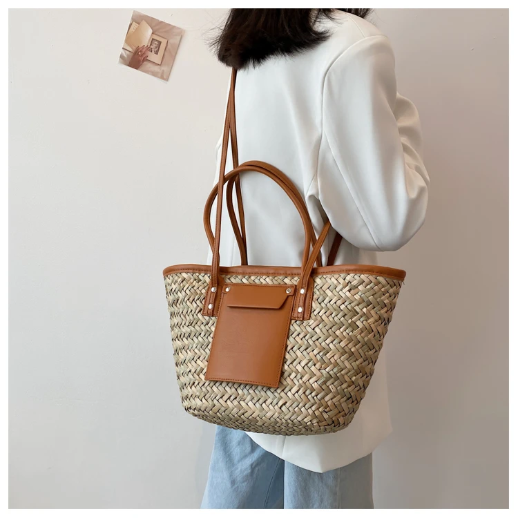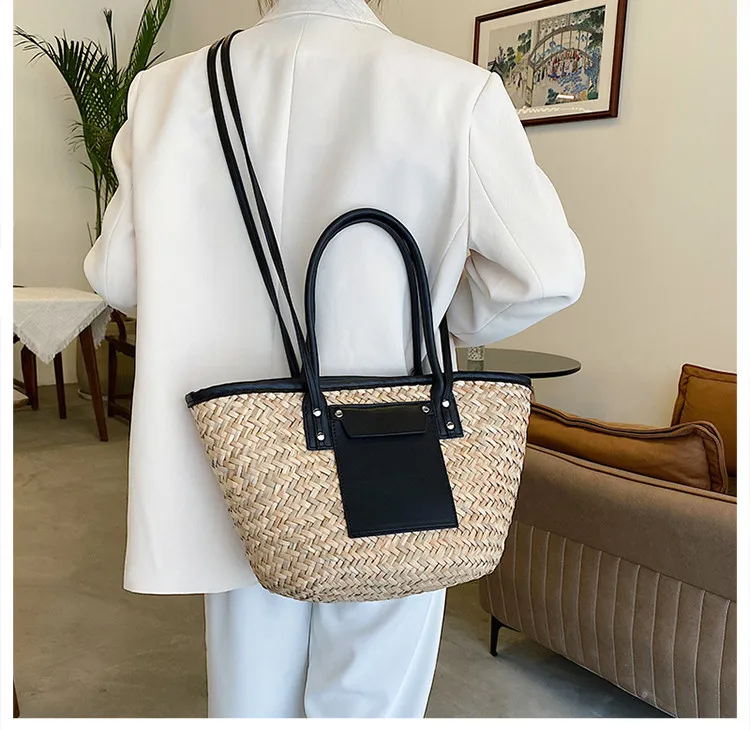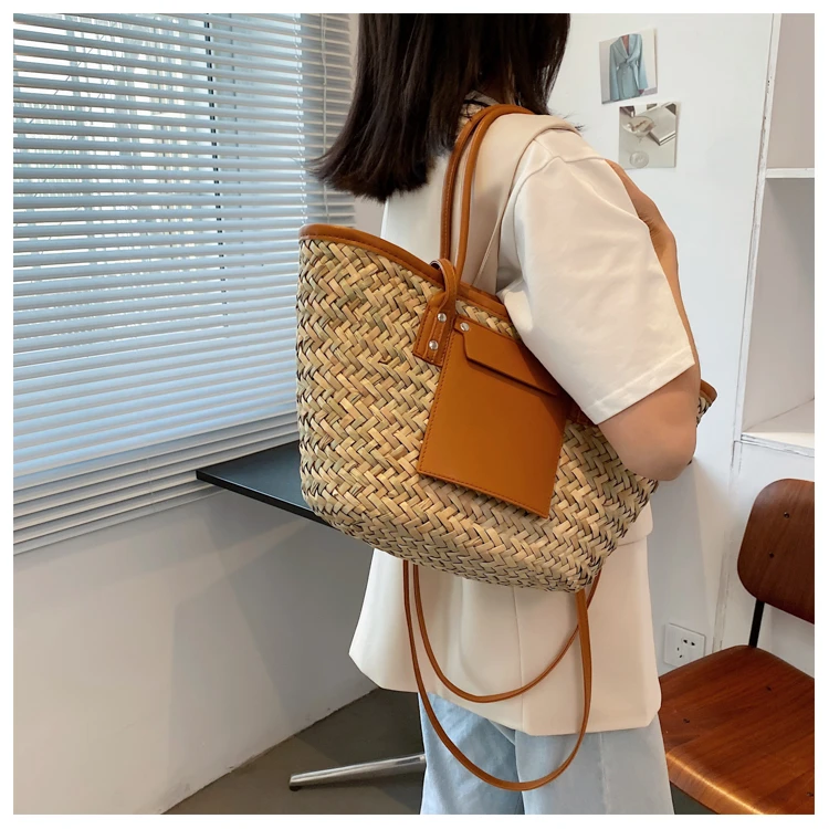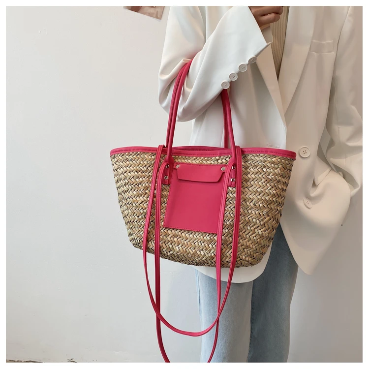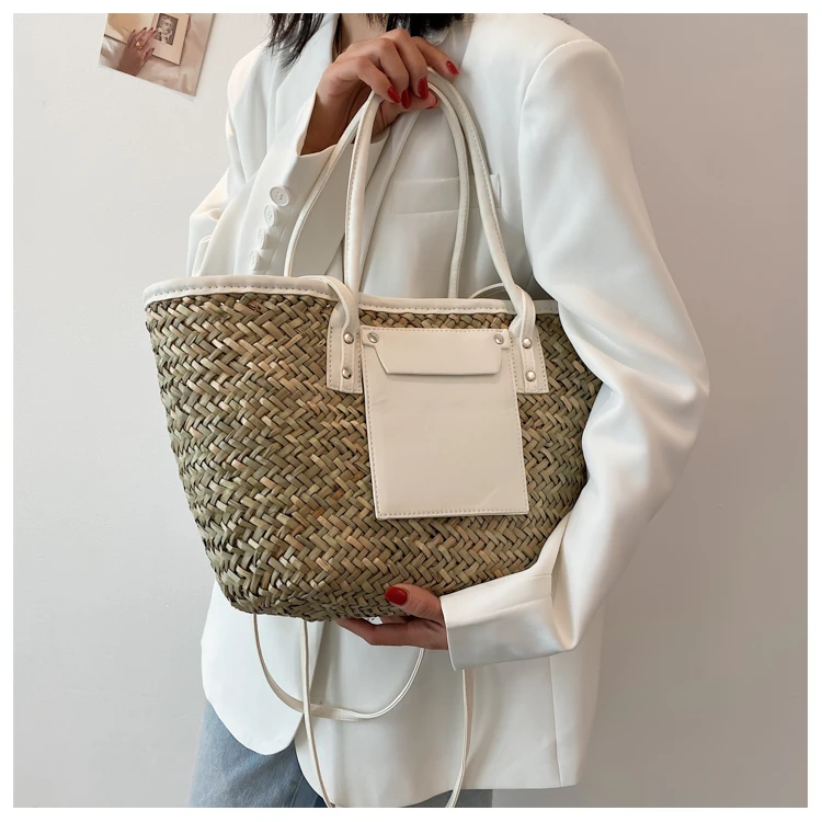 Wholesale Beach Bag Women Summer Purse Handbags Fashion Basket Tote Large Capacity Rattan Woven Handmade Straw Bags 2022