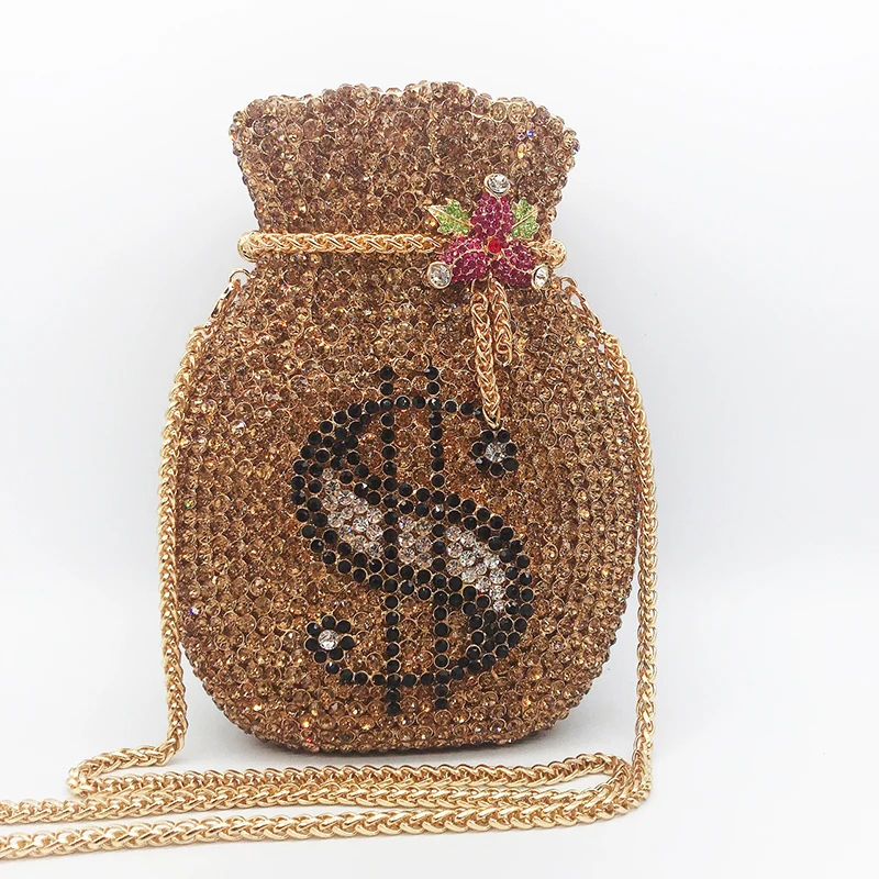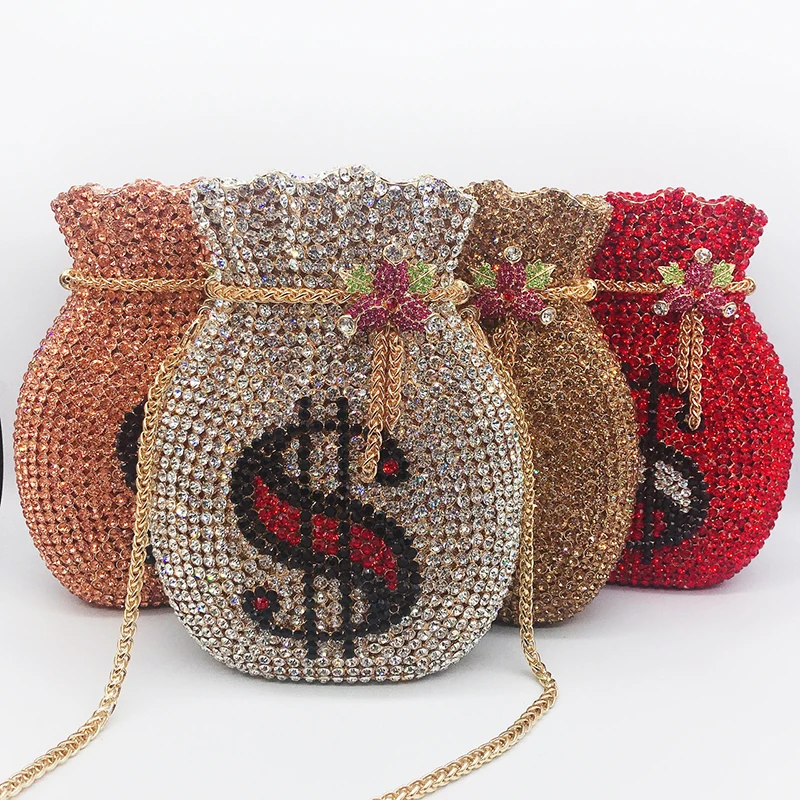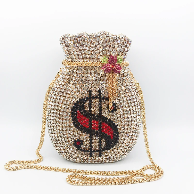 Wholesale bolsos mujer sac a main Lady Luxury Bling Dollar Money Handbag Purse Women Party diamond banquet Evening Bag Clutch