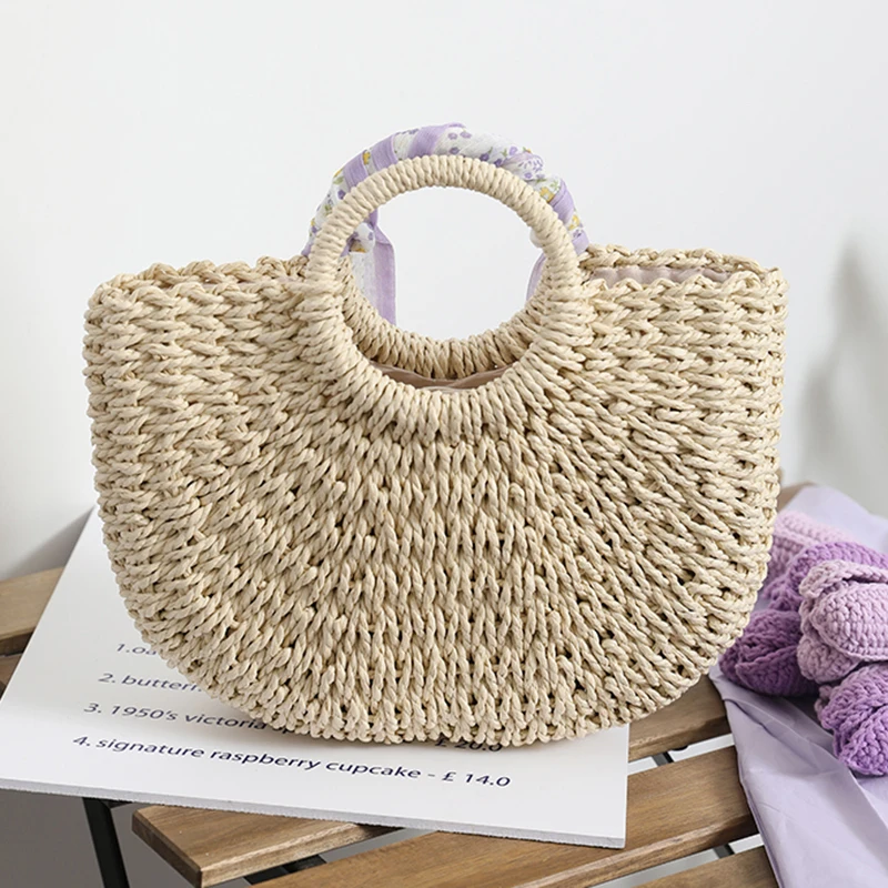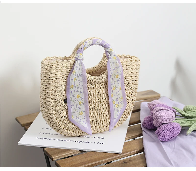 Wholesale Straw Beach Bags Handmade Rattan Bags for Women Large Bucket Tote Summer Purse 2022 Handbags