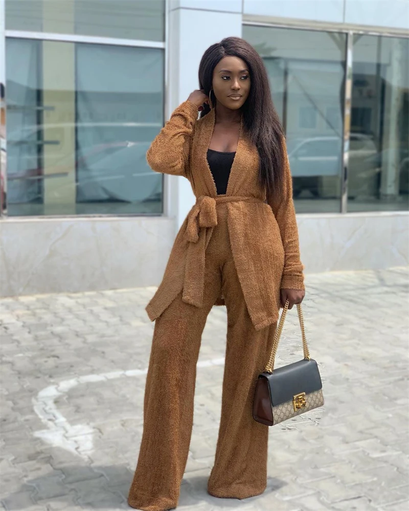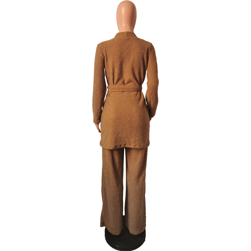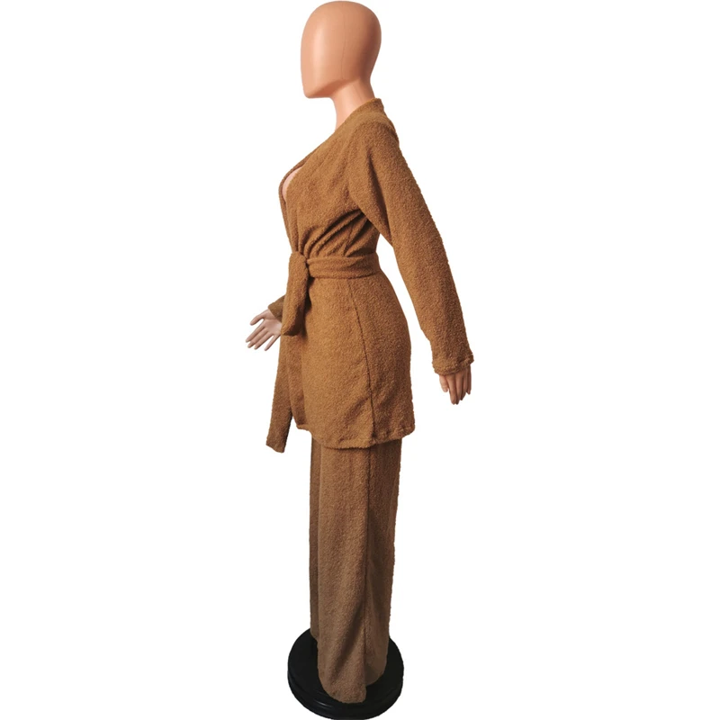 winter warm soft comfy flannel fleece two 2 piece long cardigan and pants set pajamas homewear clothing clothes for women winter