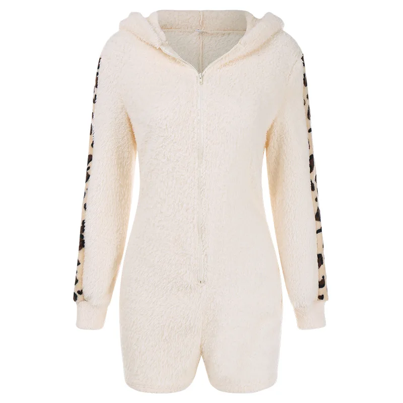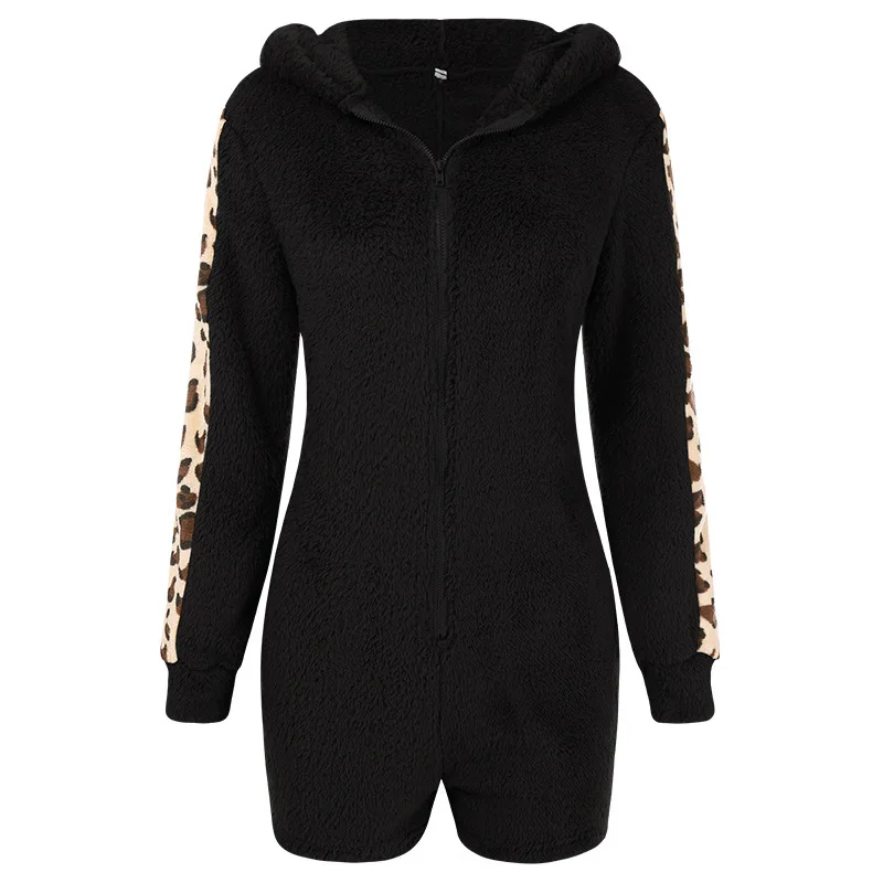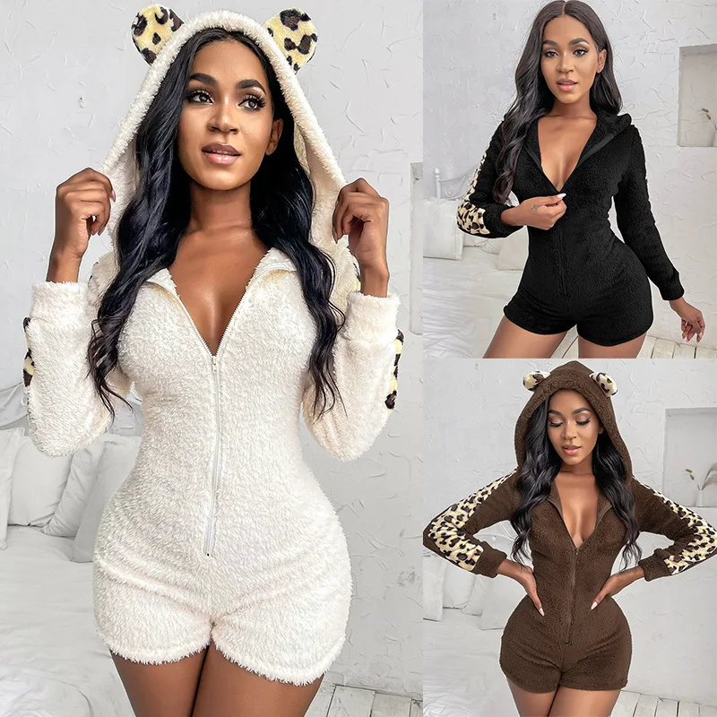 Women's clothing 2024 autumn winter tight hooded pajamas autumn winter leopard print Jumpsuit
