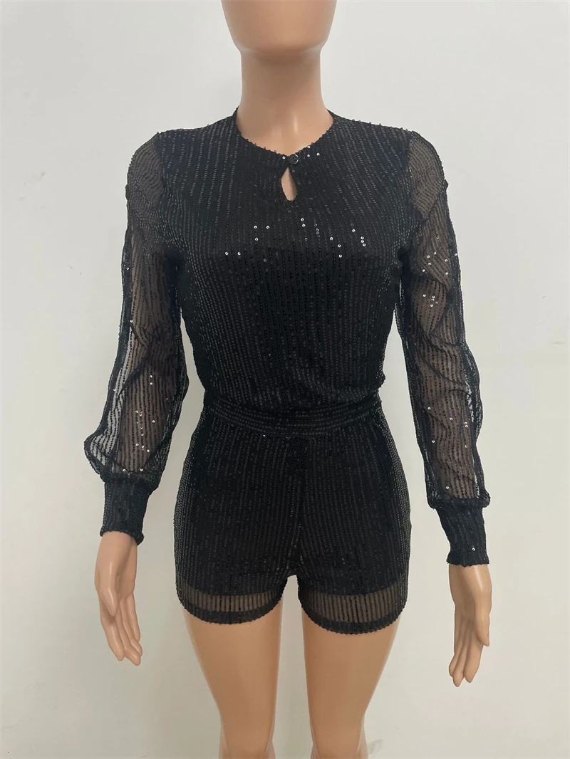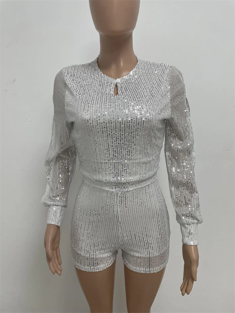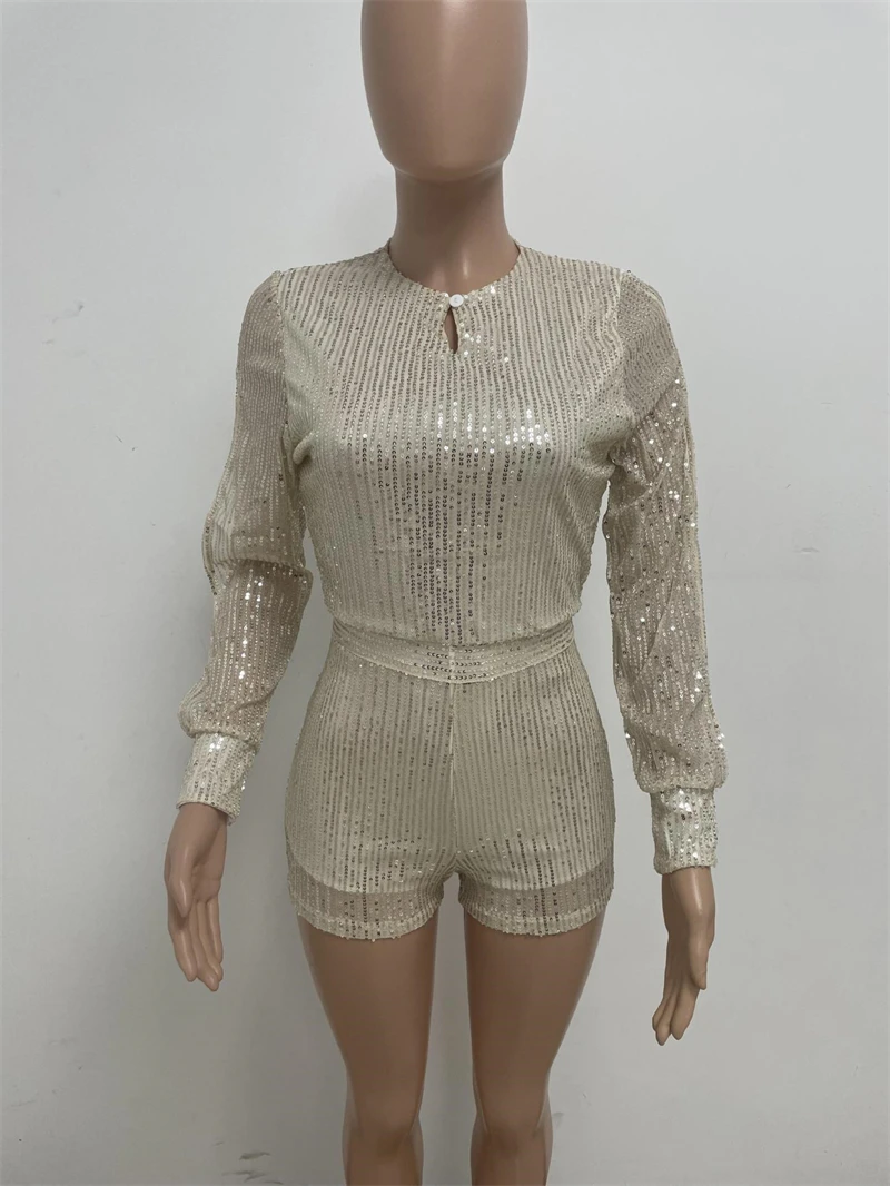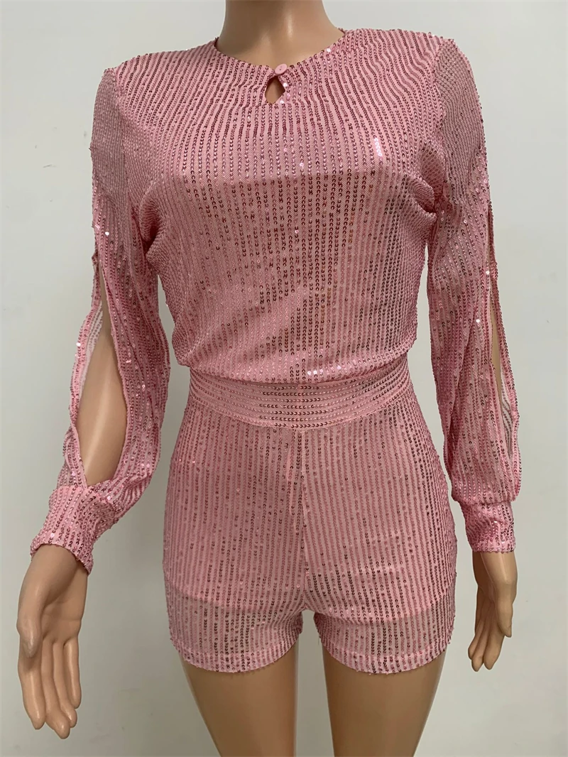 women's disco gold pink silver sequin dance short romper jumpsuit performance long sleeve sequin outfit clothing with sequins