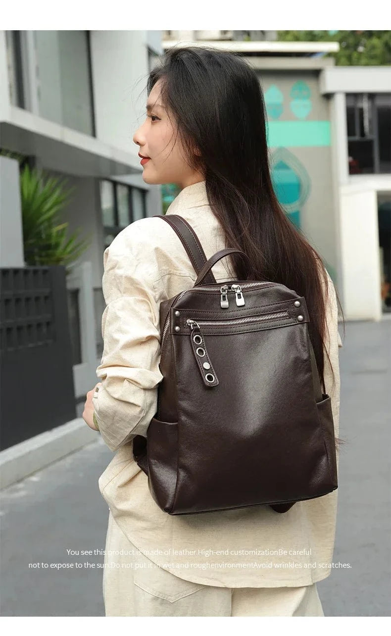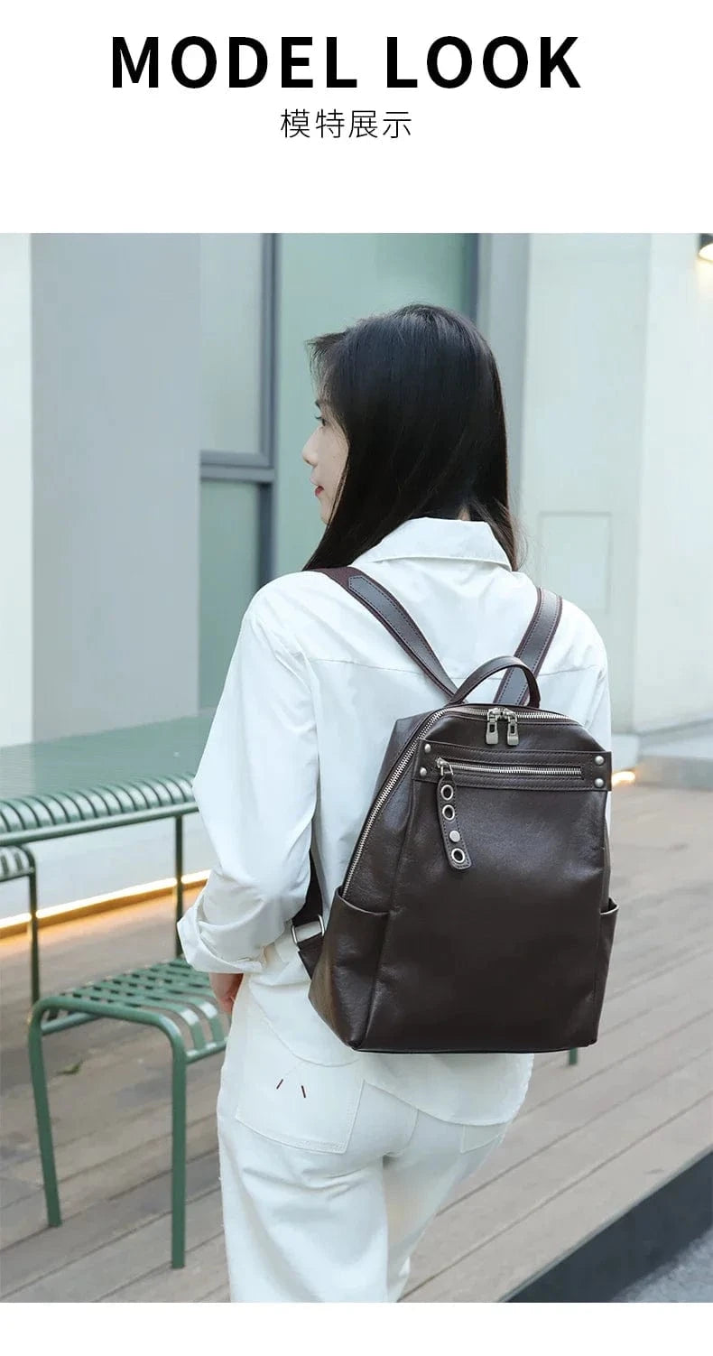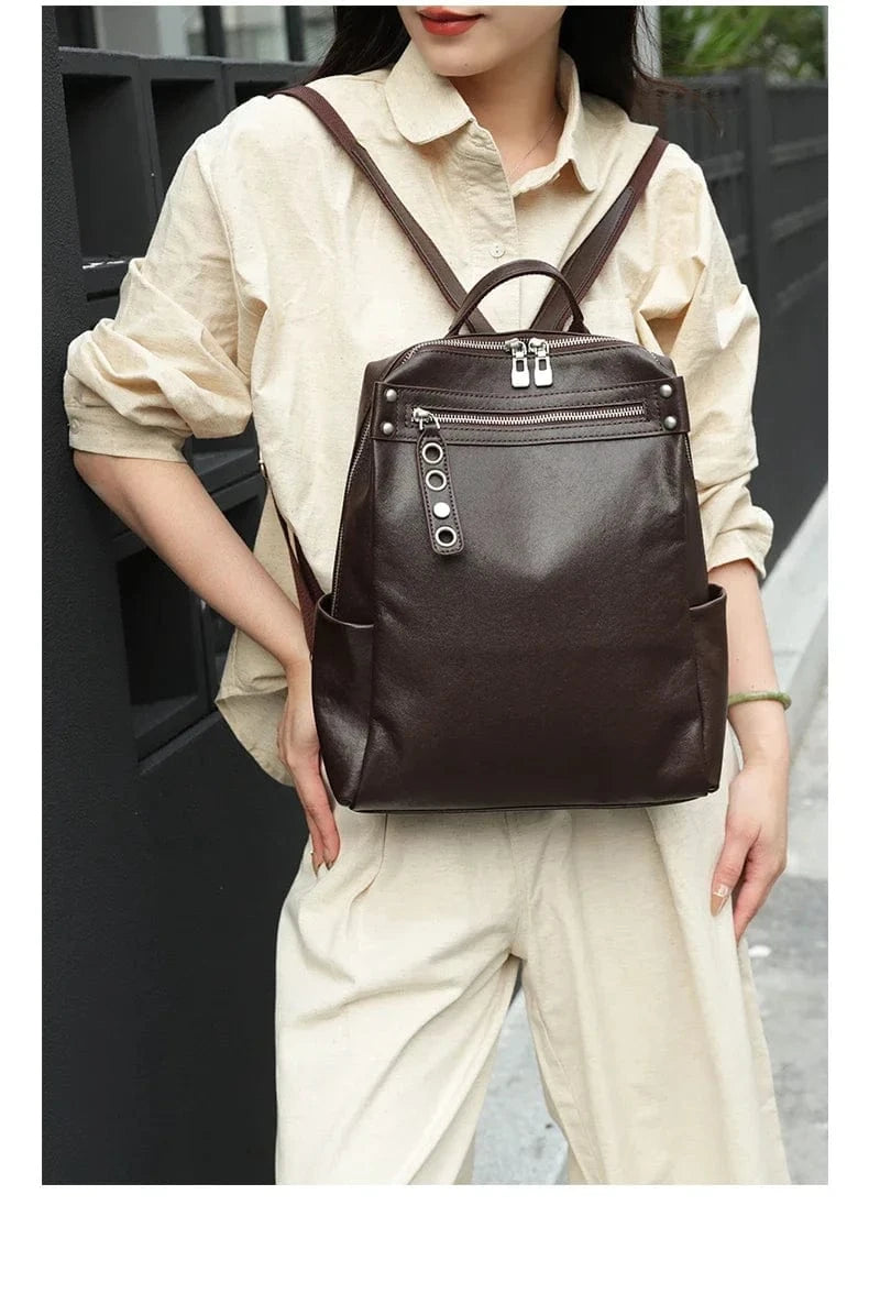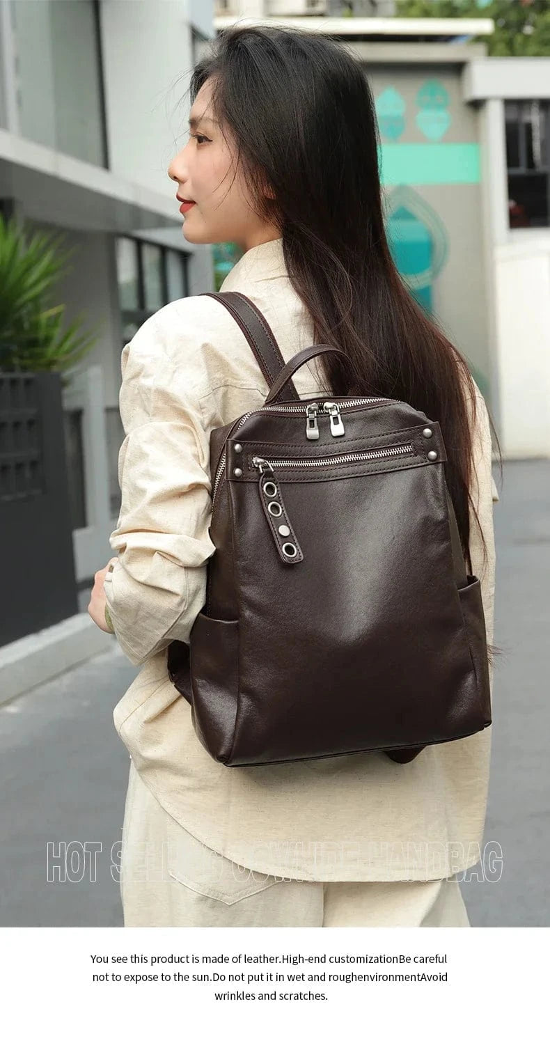 Women's Natural Cow Leather Backpacks Lady Cowhide Design Large Capacity Bags Female Retro Fashion Versatile Backpacks Ladies