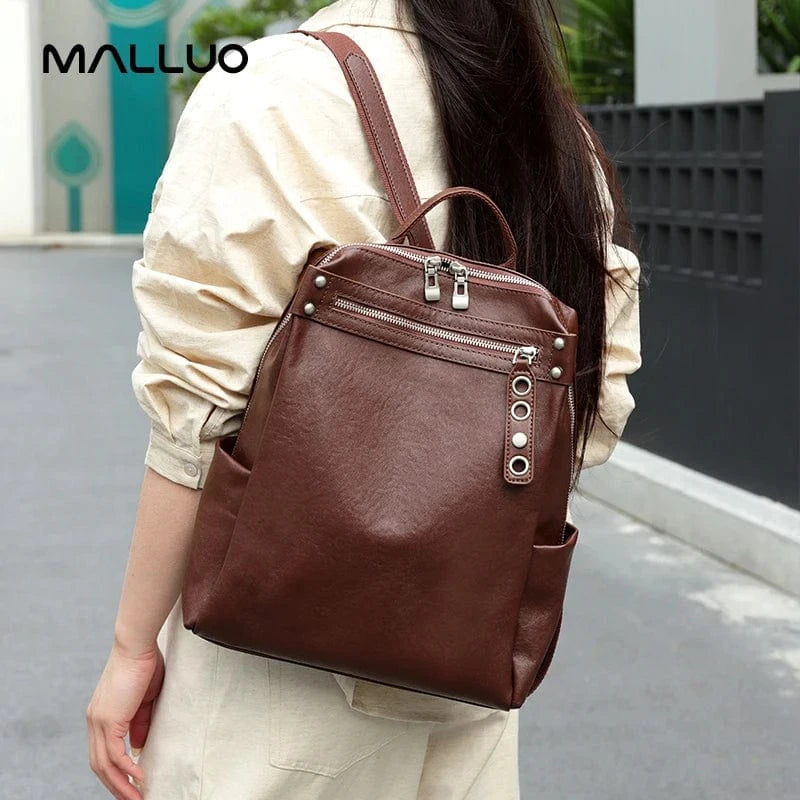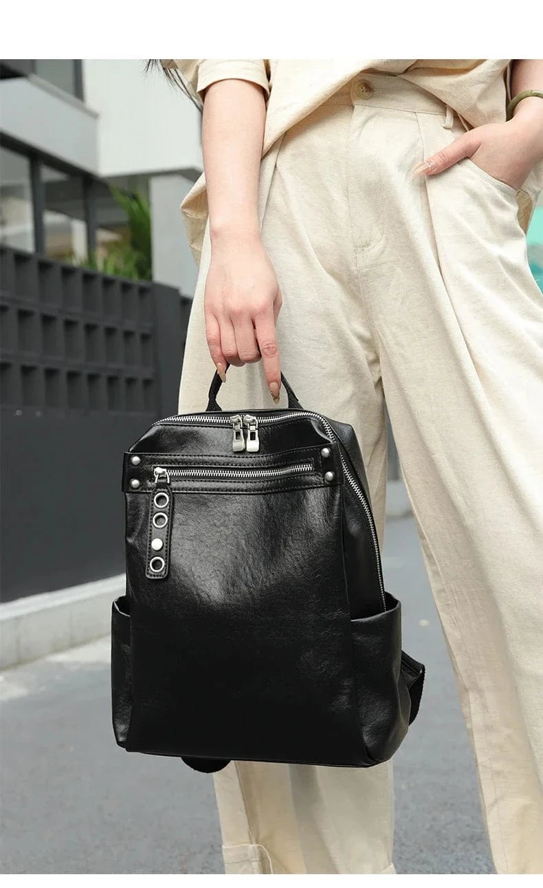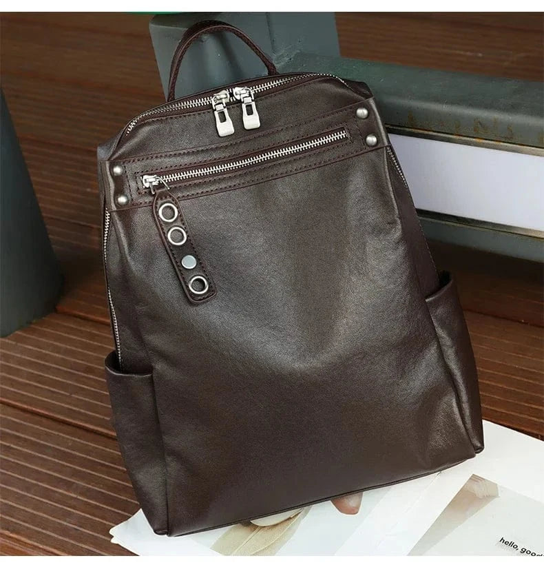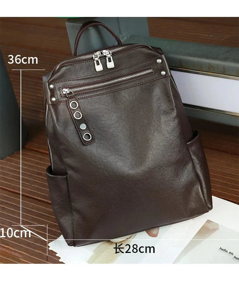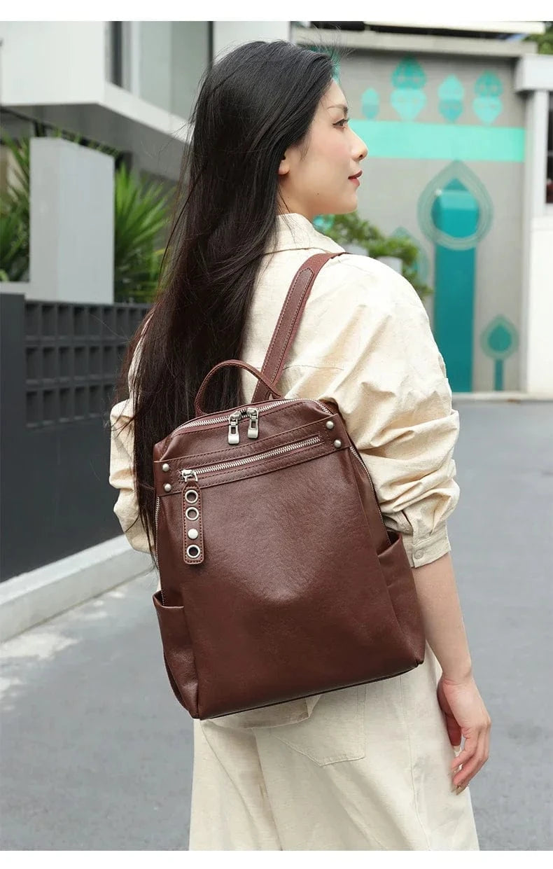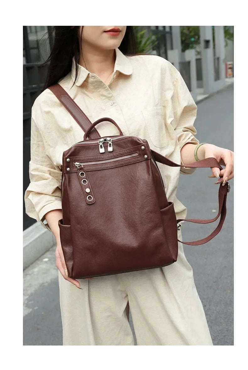 Women's Natural Cow Leather Backpacks Lady Cowhide Design Large Capacity Bags Female Retro Fashion Versatile Backpacks Ladies