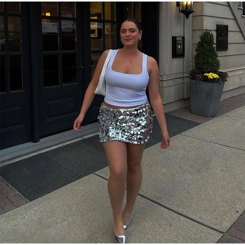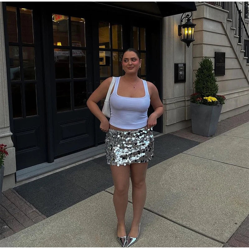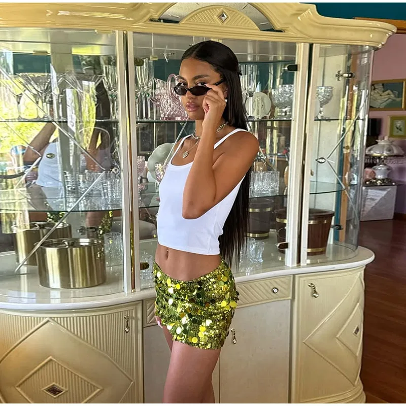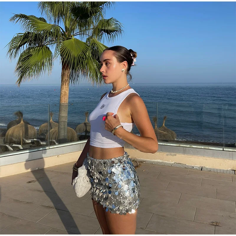 Y2k Sparkle Glitter Sequin Women's Mini Skirts High Waist Sequin Short Skirt Female 2025 Spring Summer Fashion Club Party Wears