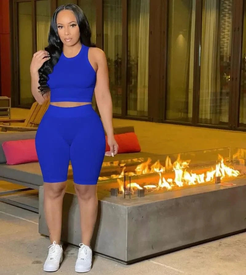 YP Summer 2024 Custom Logo Hot Sale Summer Shorts Sets Outfits Two Piece Skims Women Clothing Biker Shorts Matching 2 Piece Set