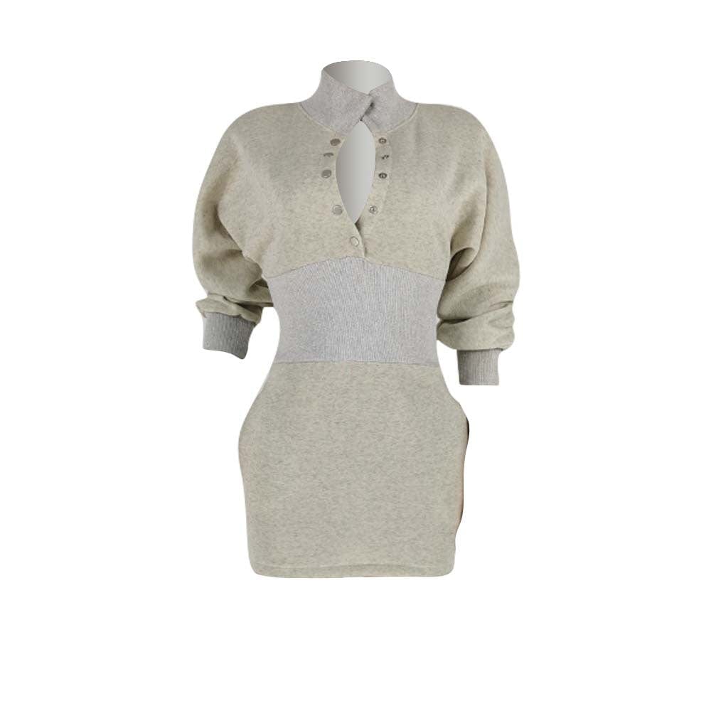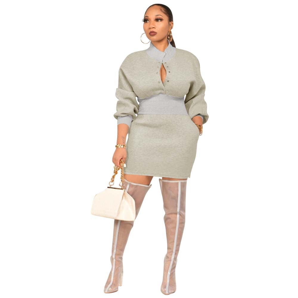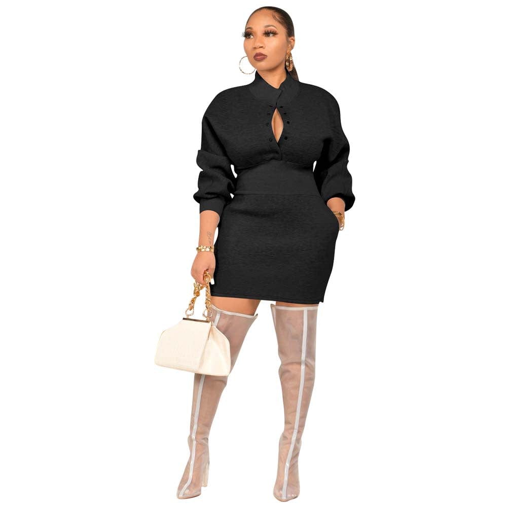 YZ-657 Women's Half High Neck Waist Cut Threaded Flocking Sweater Bag Hip Skirt