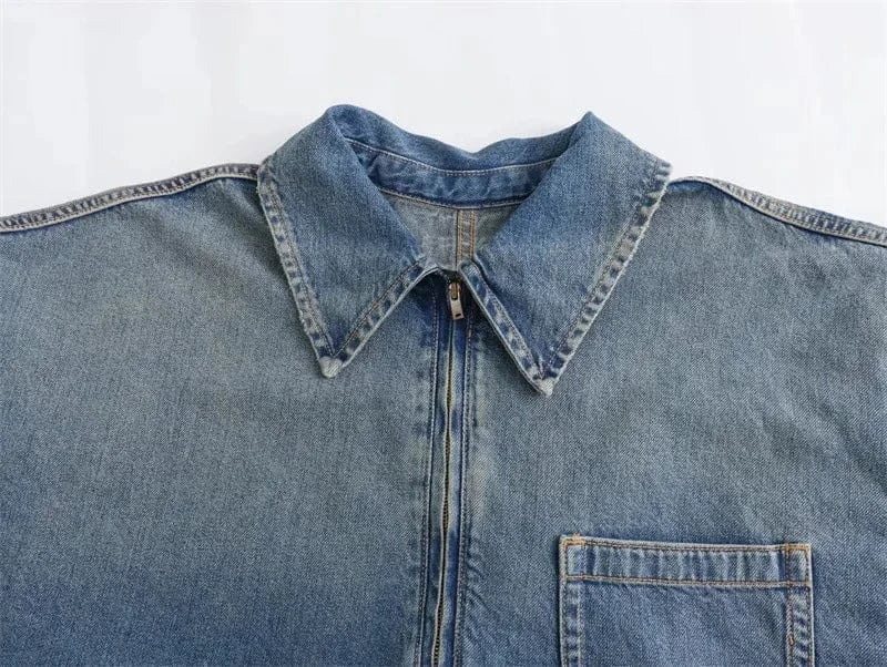 ZHEZHE Fashion 2024 spring boutique clothing women jeans dresses long sleeve pocket design loose denim dress