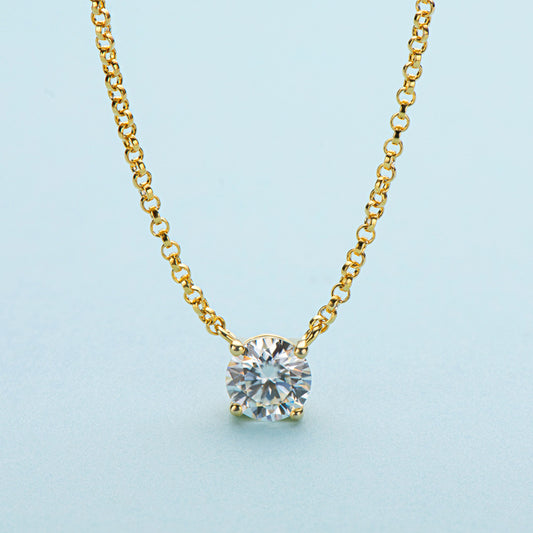 18K Yellow Gold Plated 1 Carat Brilliant Cut Diamond Test Past D Color Moissanite Pendant Necklace 925 Silver Gemstone Chain