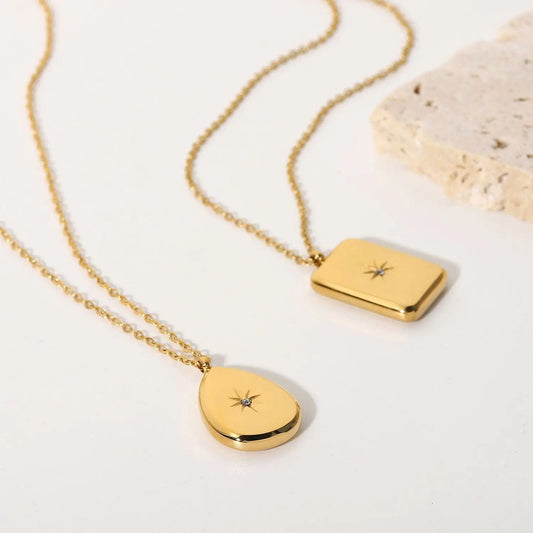 N2502 18K Gold Plated Stainless Steel Waterdrop Choker Jewelry Cubic Zircon Star Power Pendant Necklace
