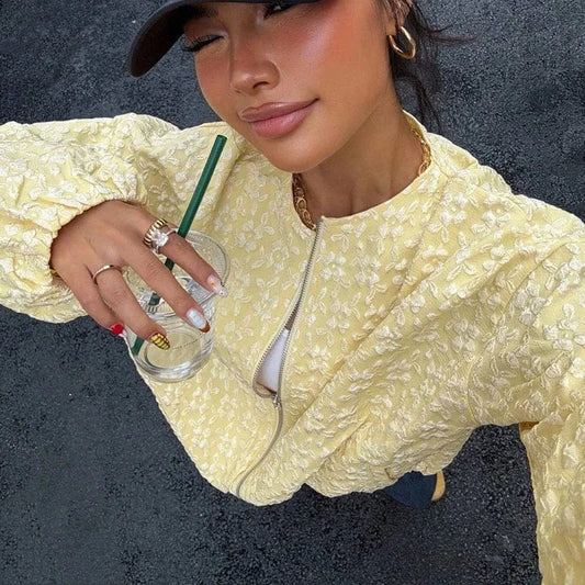 Fashion Loose Jacquard Top Coats Spring Casual O Neck Zipper Sports Jacket for Women Autumn Long Sleeve Cardigan Outerwear Mujer