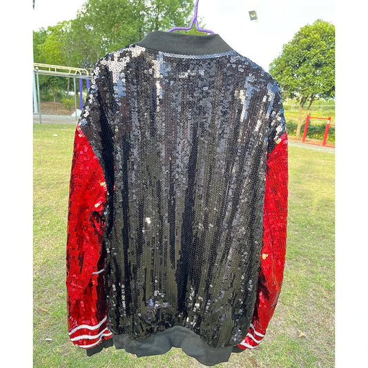 Plus Size Black Sequin Red DST Greek Sorority Sequin Jackets Baseball jackets