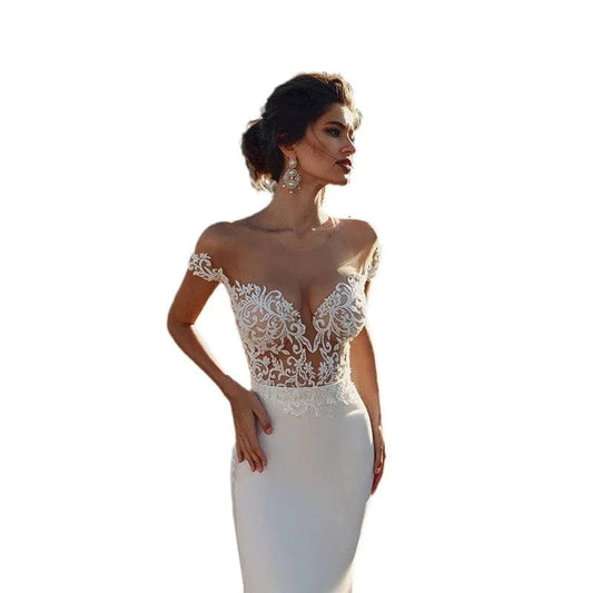 S0783T 2024 Spring Season Hot Selling Off-Shoulder Royal Design Wedding Dress Sexy Elegant Plus Size Evening Gown Half Sleeve