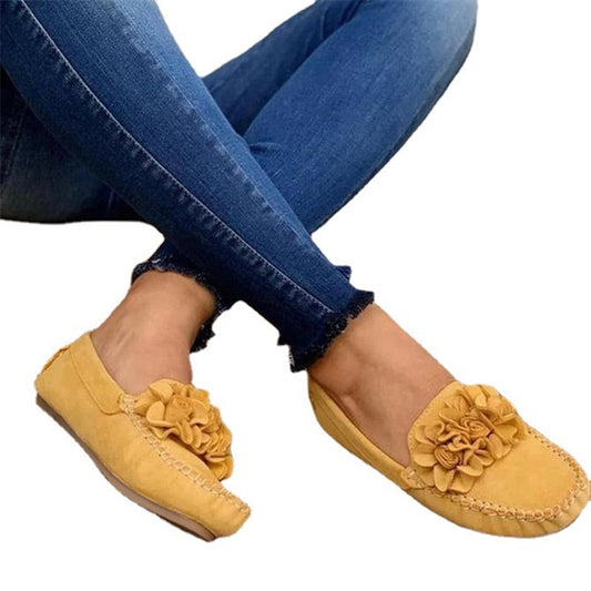 Women Peas Shoes Casual Flowers Lazy Shoe Flock Loafers Slip-On Girls Single Shoes Blue Yellow Plus Size Flats