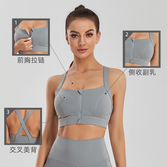 Custom 5XL Plus Size Women Sports Bra Front Zipper Shockproof Breathable HOOK & LOOP Adjustable Yoga Top Fitness Sports Bra