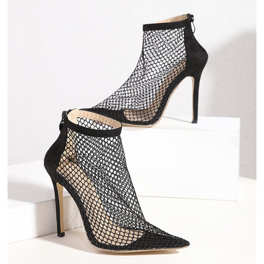 Sexy Black Back Ankle Peep Toe Zippers 2022 Summer Autumn New Thin High Heel Mesh Hollow Party Dress Shoes 35-40 Women Boots