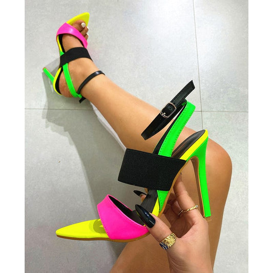 Summer New Ankle Strap Colour Sandal 2023 Stiletto High Heel Shoes Roman Wedding Stripper Modern GLADIATOR 35-42 Women Sandals