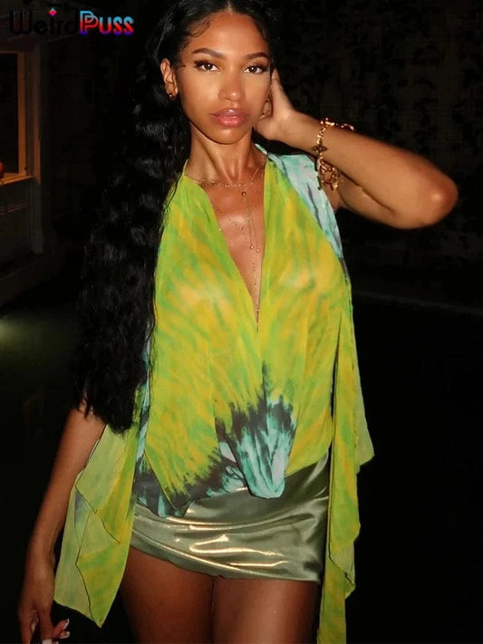 Weird Puss Y2K Summer Tank Tops Women Halter Swing Collar Thin Backless Irregular Bandage Loose Summer Hipster Midnight Camisole